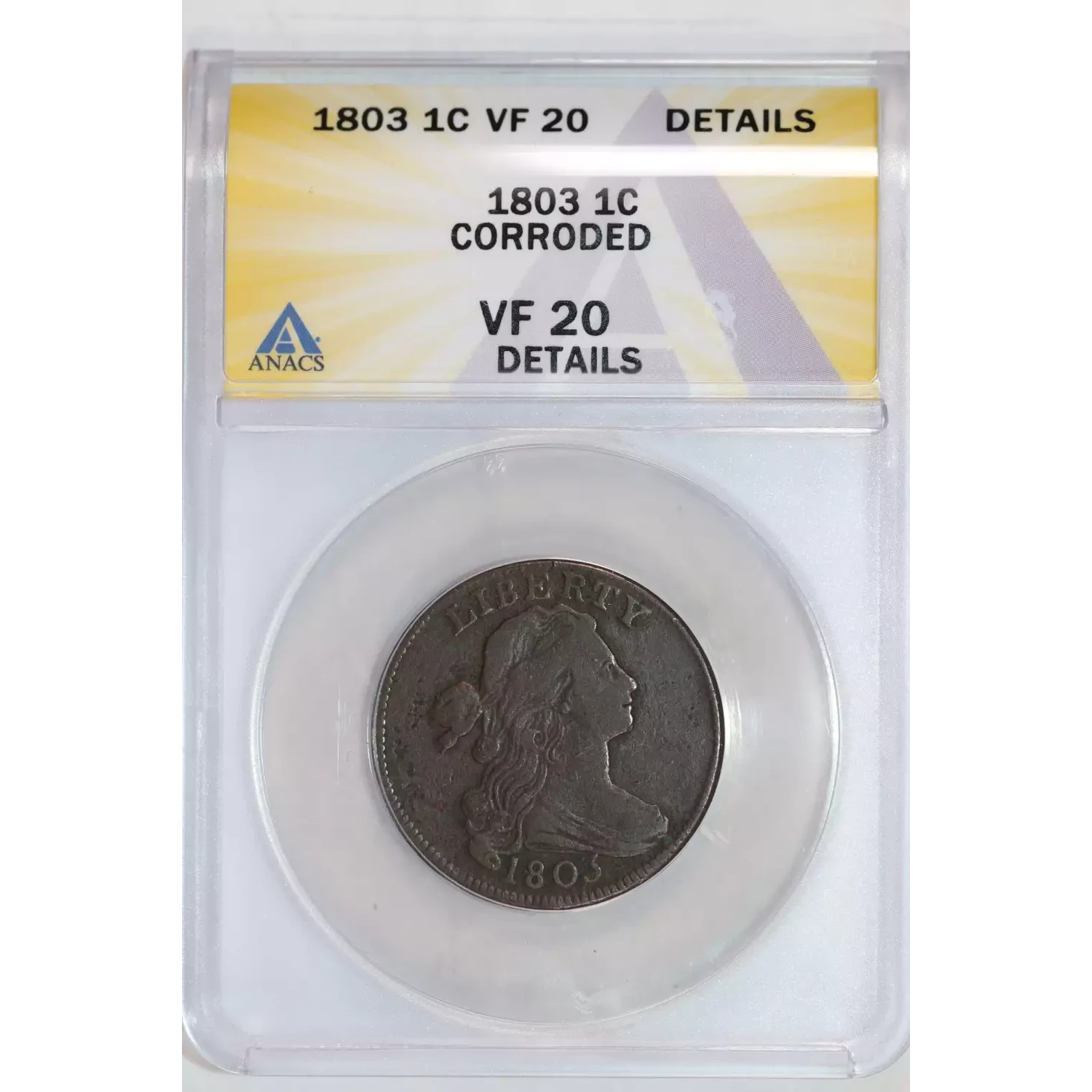 1803 DRAPED BUST LARGE CENT ANACS VF20 DETAILS