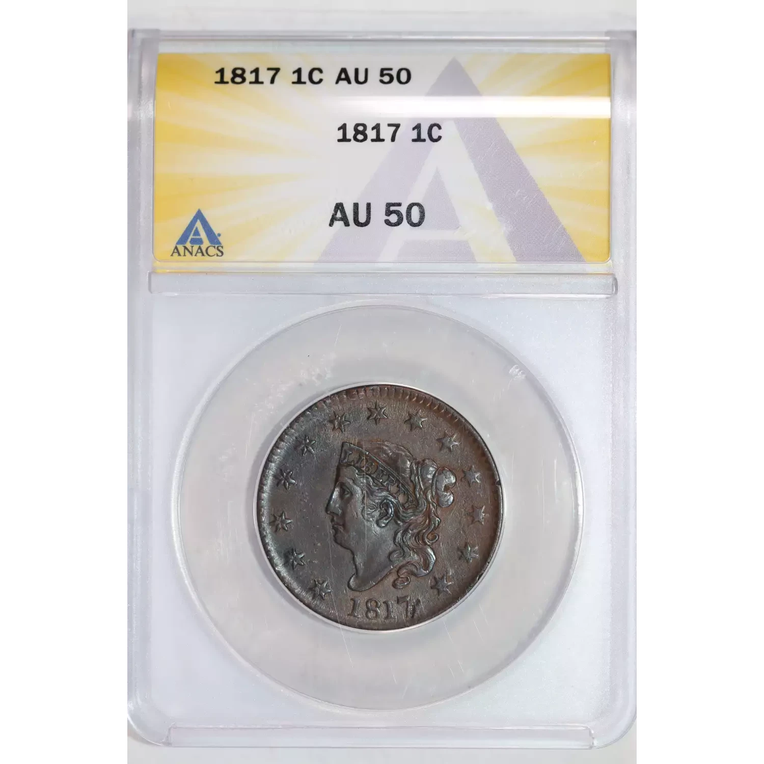 1817 CORONET HEAD LARGE CENT ANACS AU50