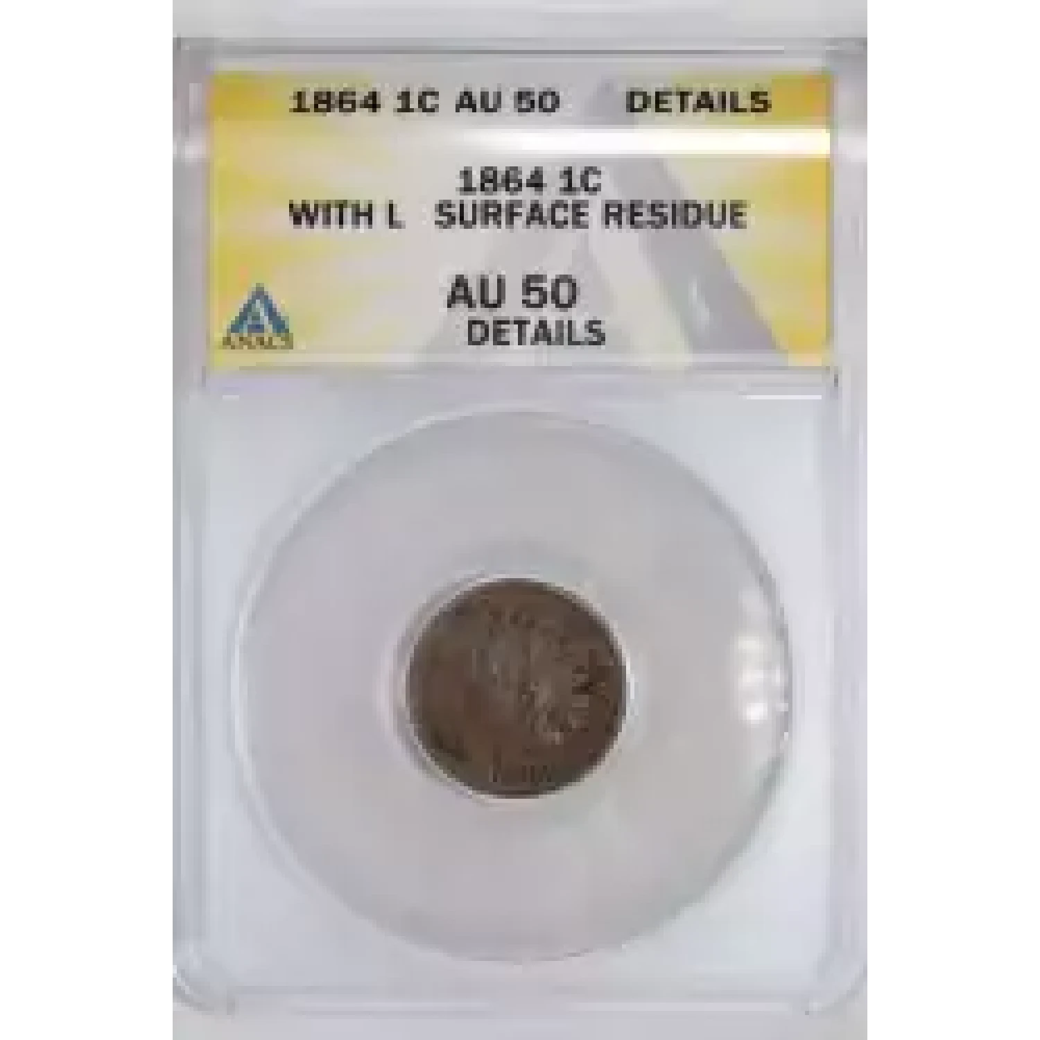 1864 INDIAN CENT WITH L ANACS AU50 DETAILS