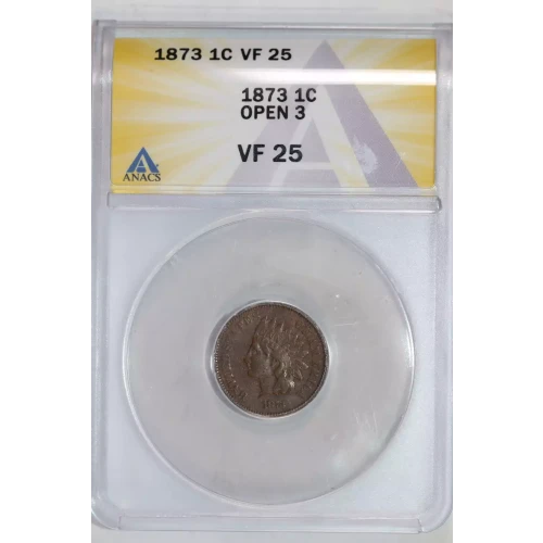 1873 OPEN 3 INDIAN CENT ANACS VF25