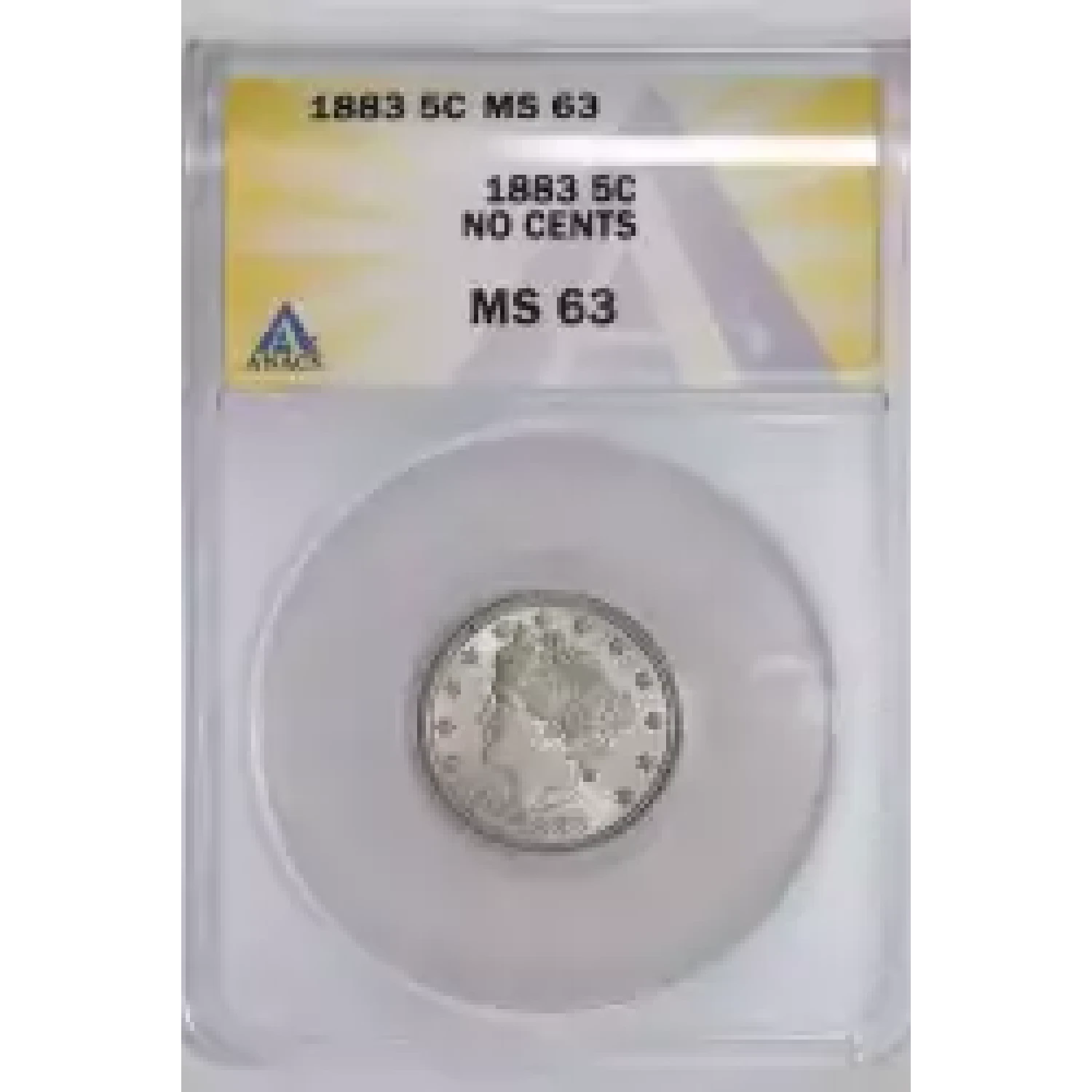 1883 NO CENTS LIBERTY NICKEL ANACS MS63