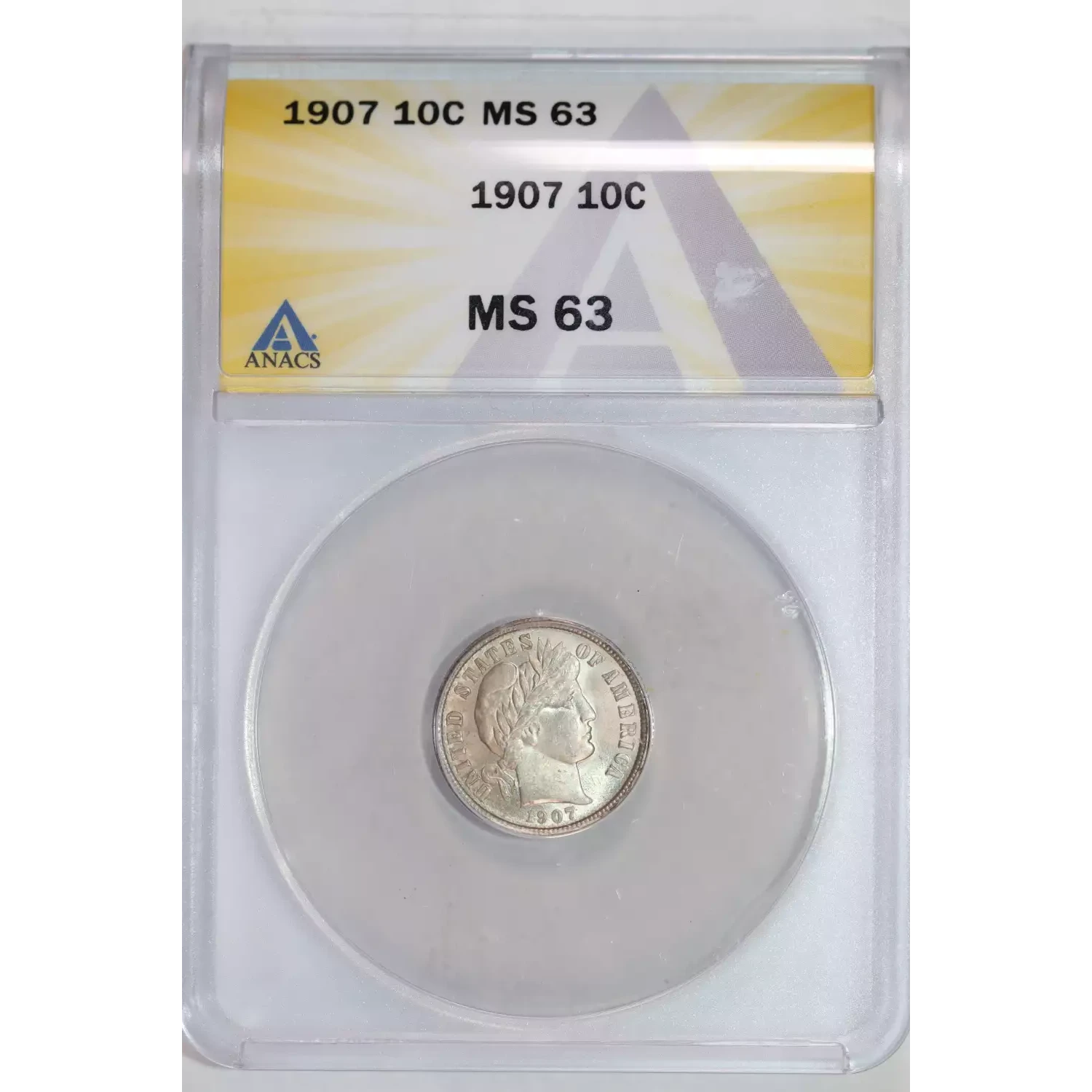 1907 Dimes Barber or Liberty Head ANACS MS-63