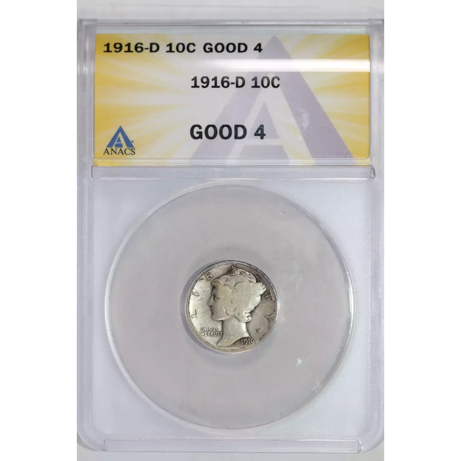 1916-D Dimes Winged Liberty Head or Mercury ANACS G-4