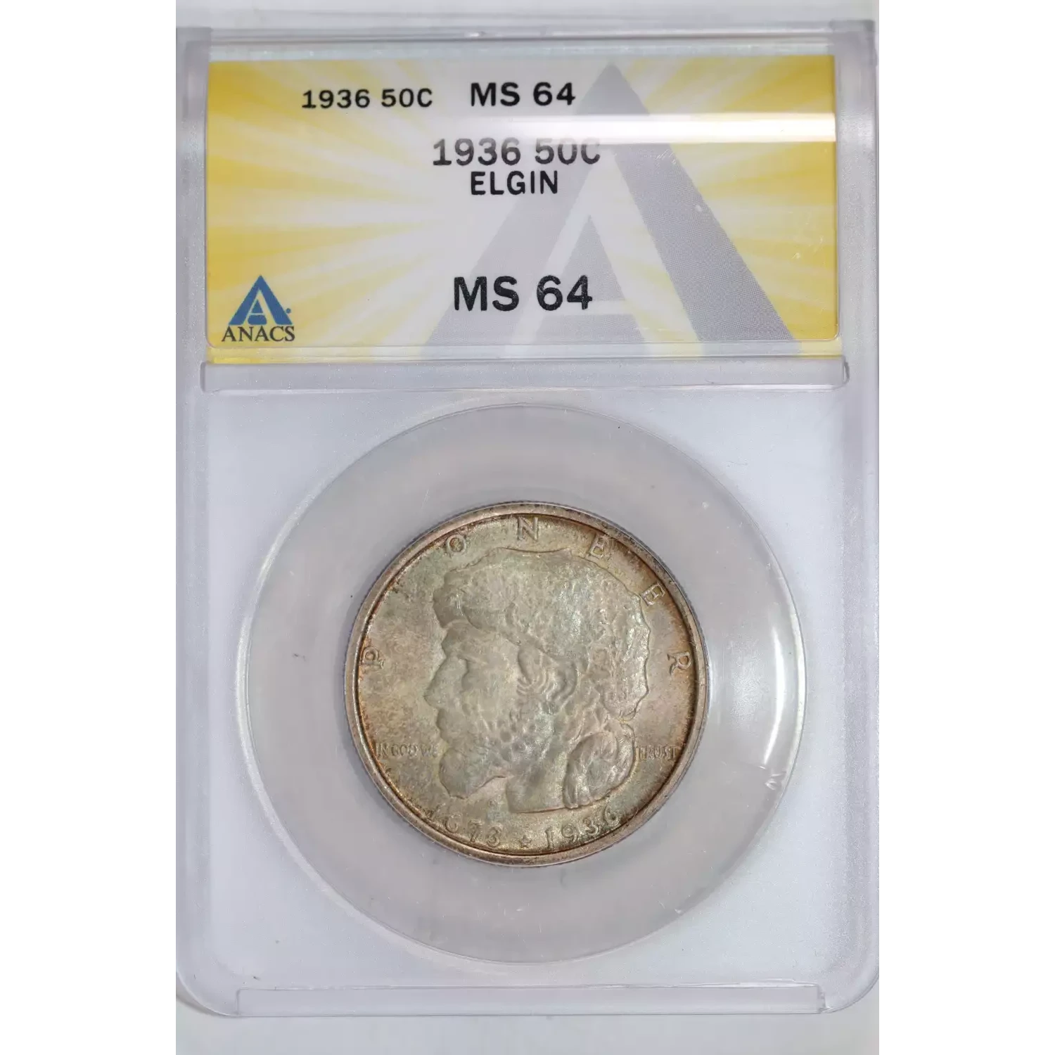 1936 ELGIN SILVER COMMEMORATIVE HALF DOLLAR ANACS MS64