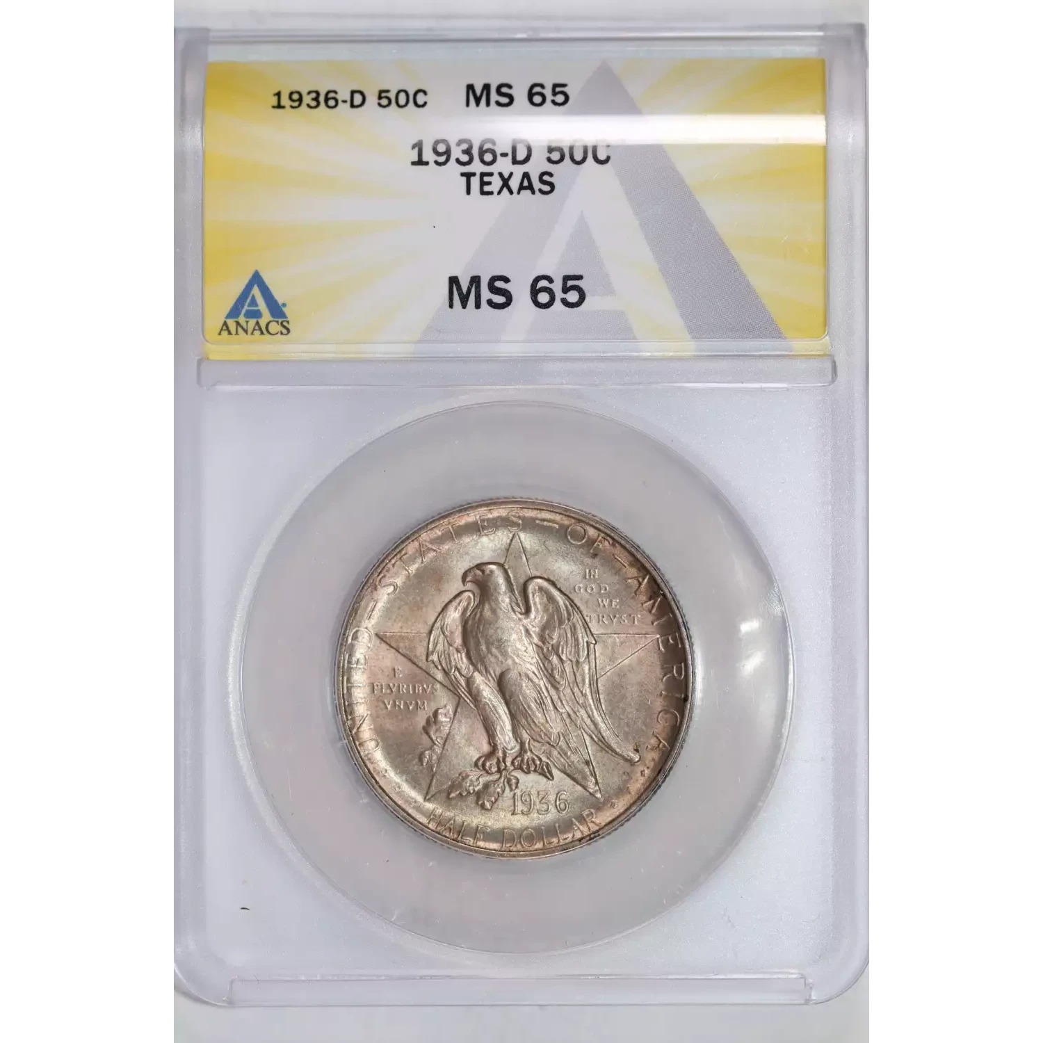 1936-D TEXAS SILVER COMMEMORATIVE HALF DOLLAR ANACS MS65