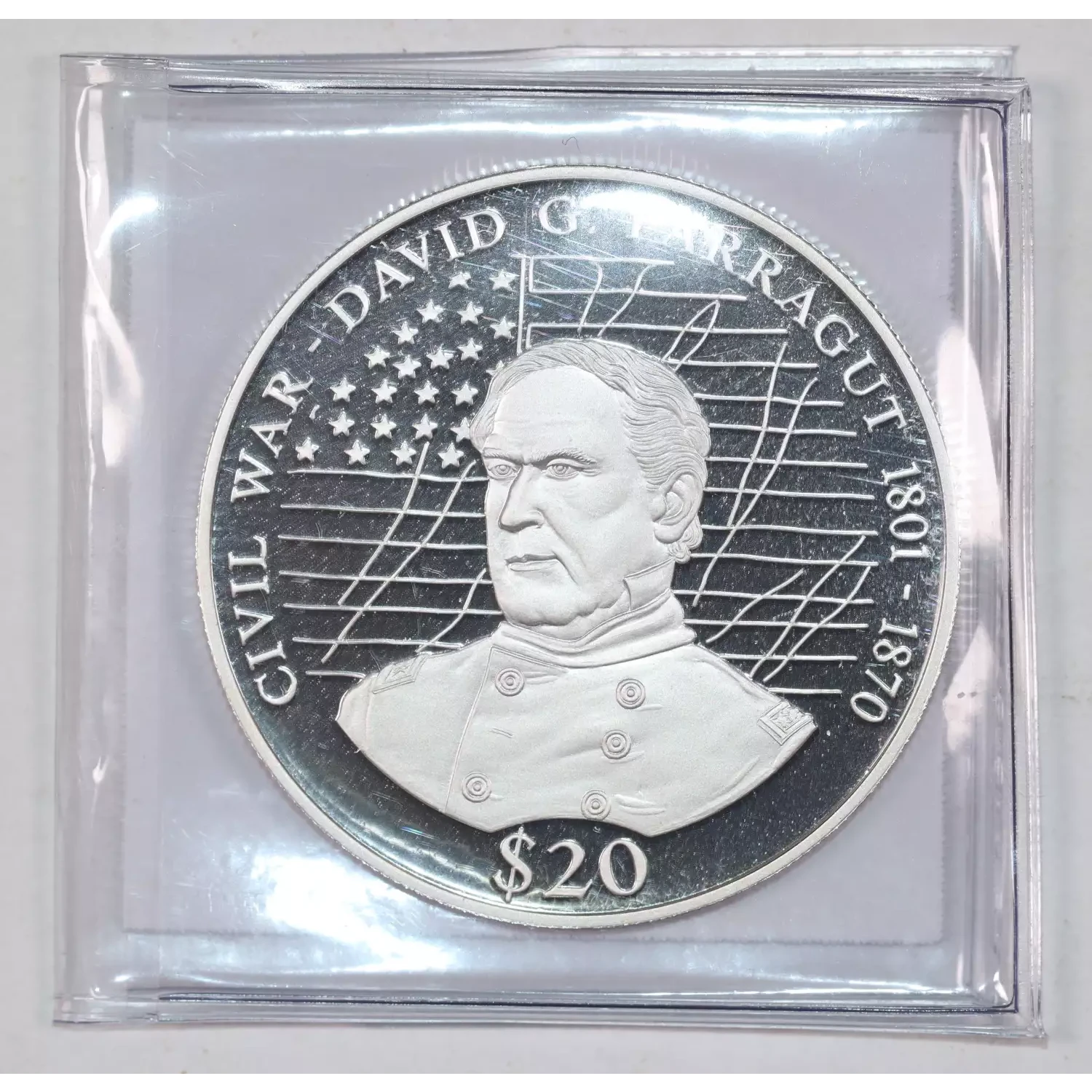 2000 $20 SILVER LIBERIA COIN .6432 AGW CIVIL WAR-DAVID G. FARRAGUT