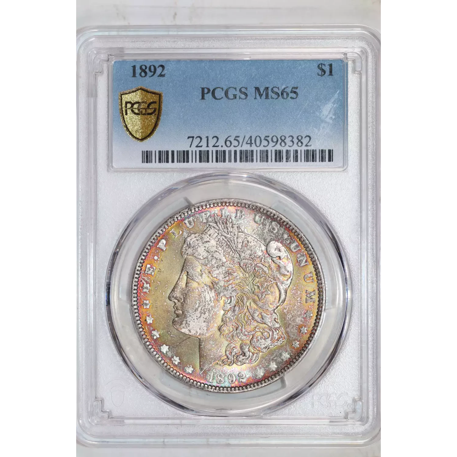 1892 MORGAN DOLLAR PCGS MS65 VERY PQ! RAINBOW TONING!