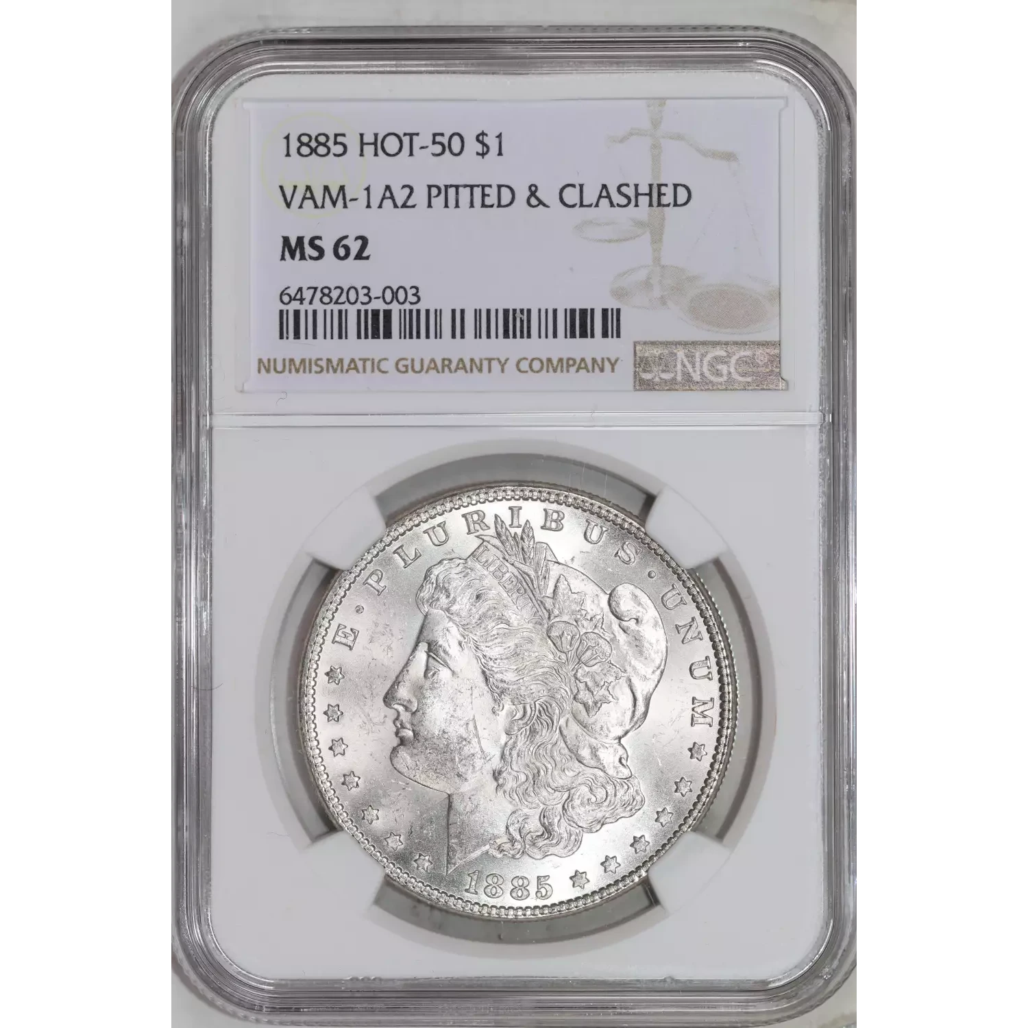 1885 VAM-1A2 "PITTED REVERSE" HOT 50 MORGAN DOLLAR NGC MS62