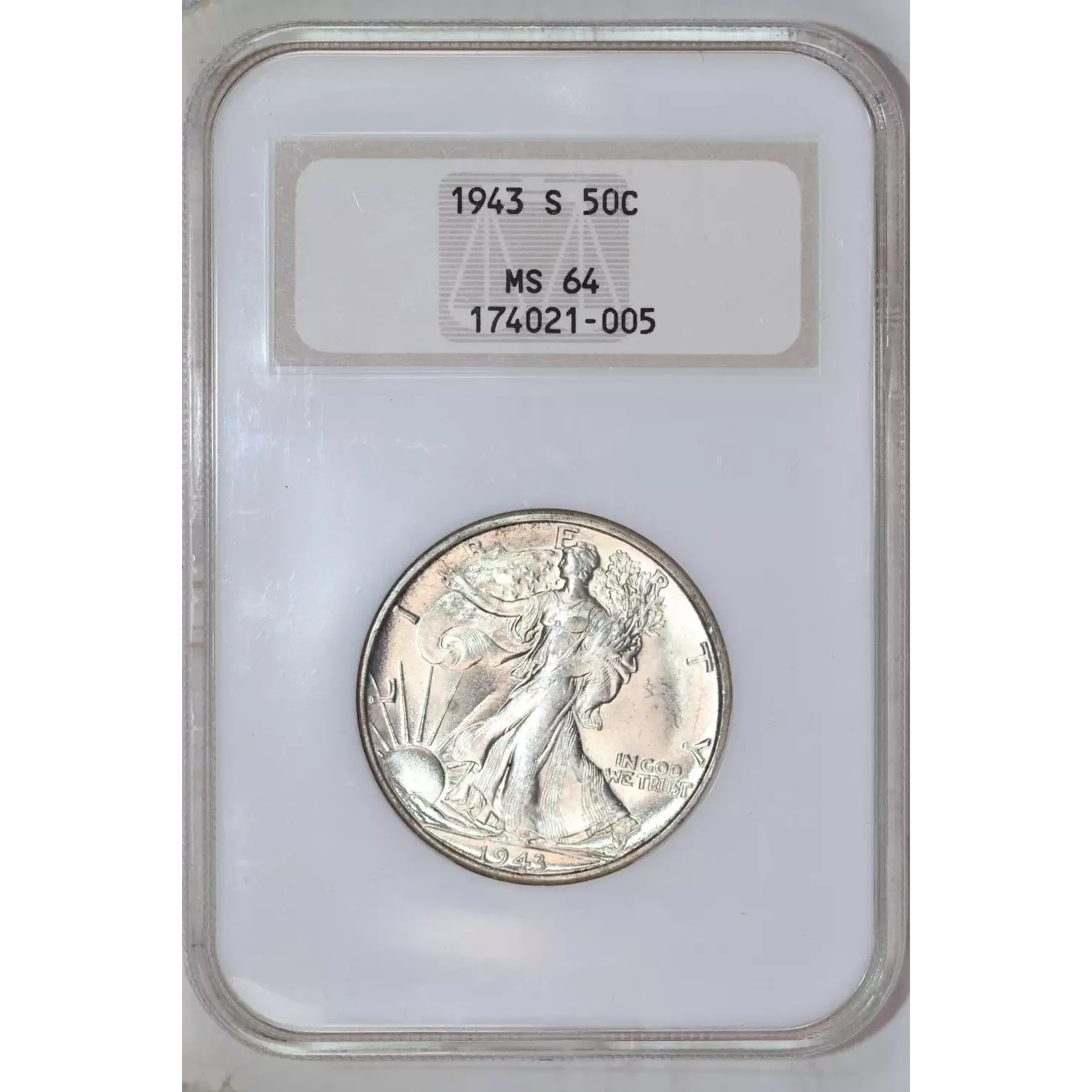 1943-S Half Dollars Liberty Walking NGC MS-64