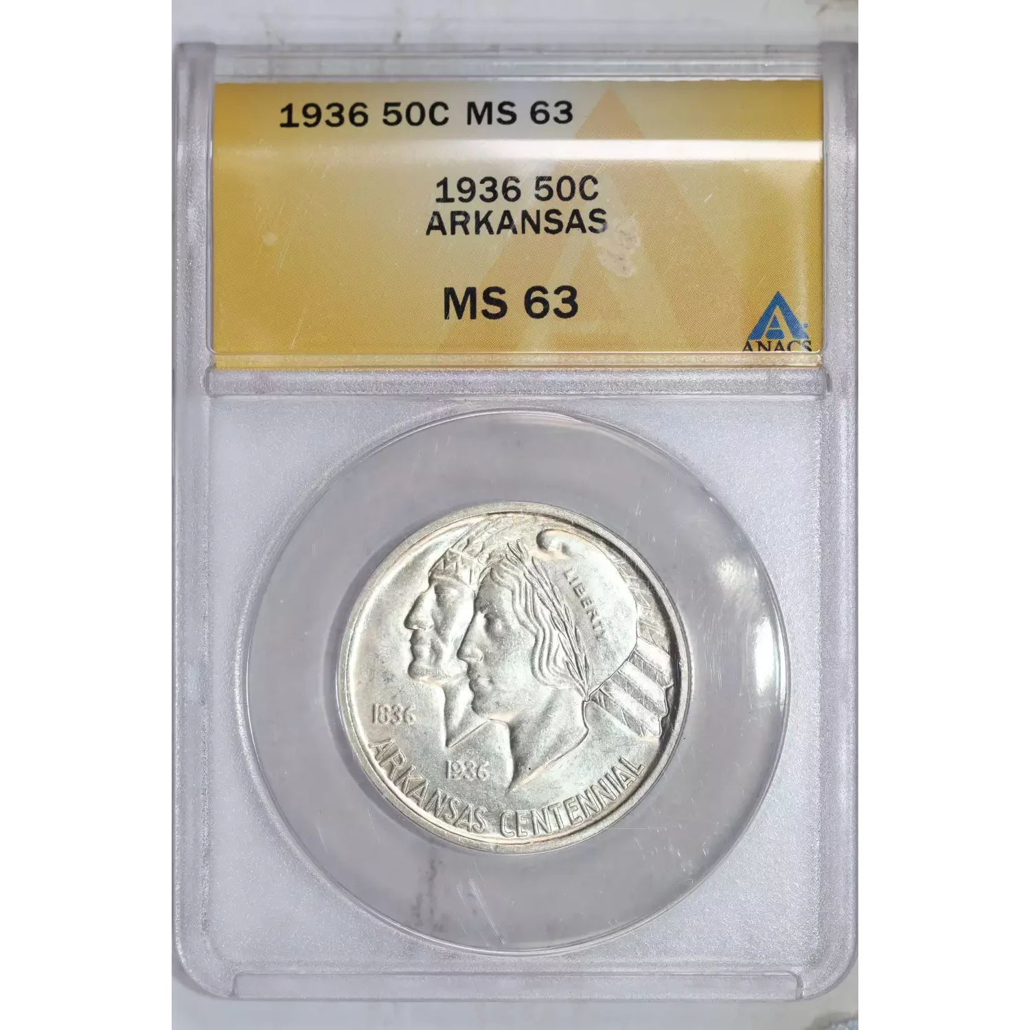 1936 ARKANSAS SILVER COMMEMORATIVE HALF DOLLAR ANACS MS63