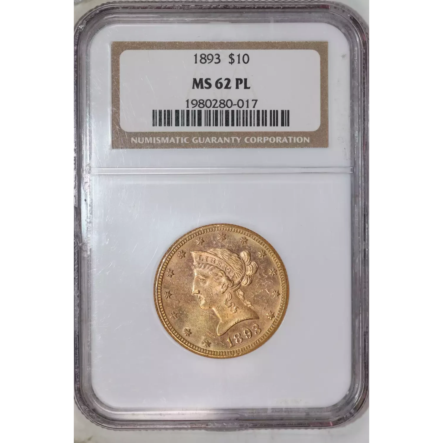 1893 Gold Eagles Liberty Head NGC MS-62 PL