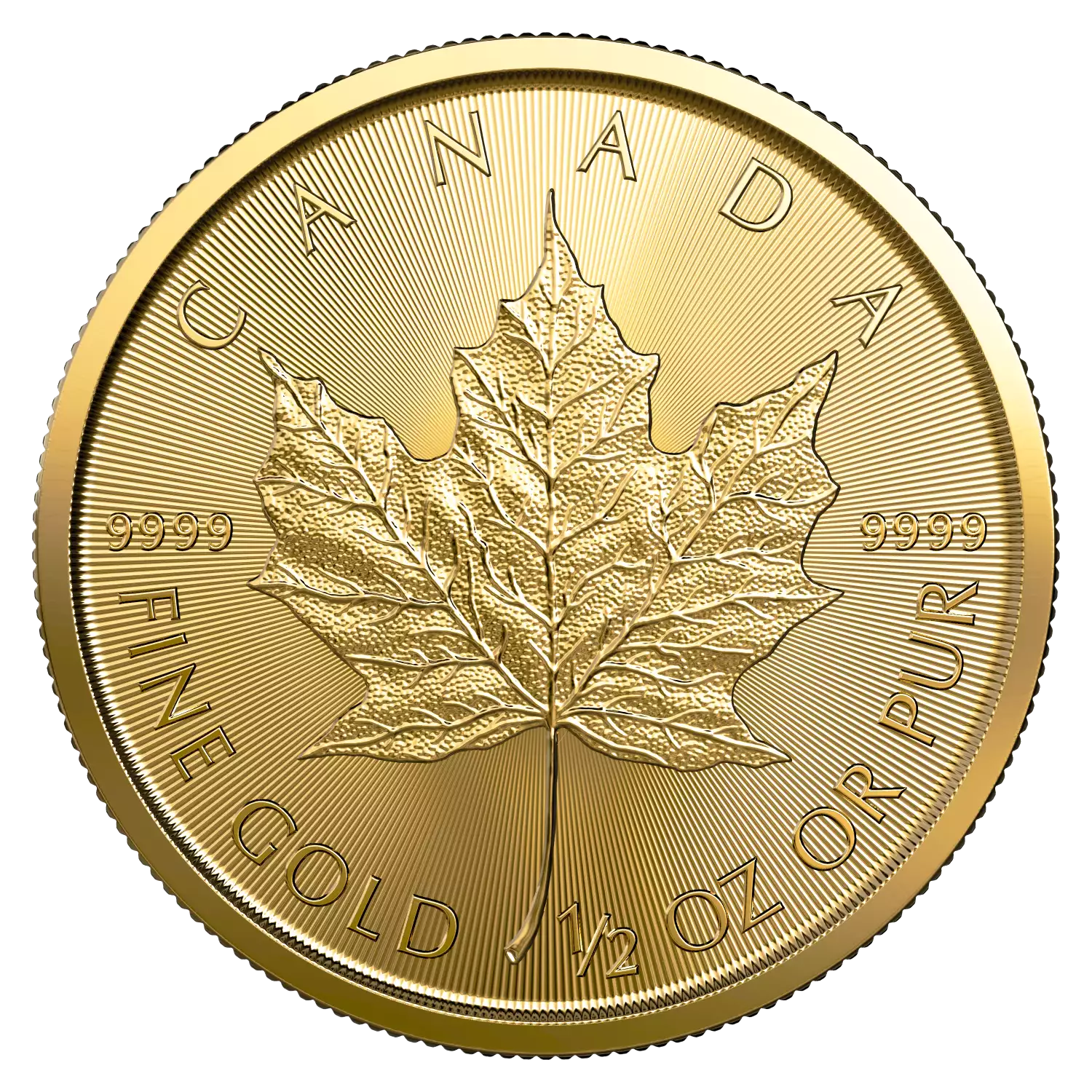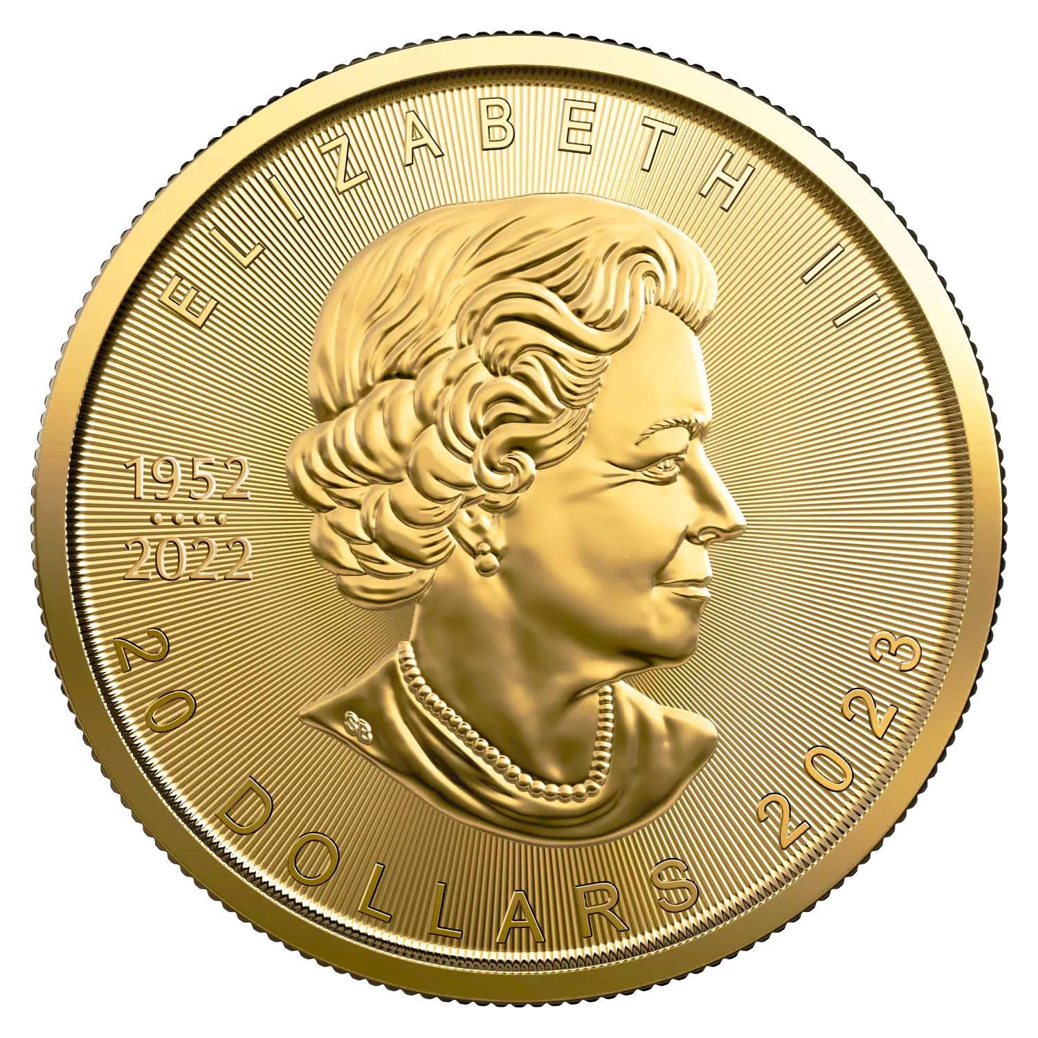 The 2023 1/2 oz Canadian Gold Maple Leaf is one of the most popular gold coins in the world. These beautiful gold coins are backed by the Canadian government and contain a gold purity of .9999.The obverse features the effigy of Queen Elizabeth II by Susanna Blunt The obverse also bears a special marking that includes four pearls symbolizing the four effigies that have graced Canadian coins and the double date of her reign. Three unique features for cutting edge security, including precise radial lines, a micro engraved leaf and Bullion DNA TM Anti Counterfeiting Technology, exclusive to the Royal Canadian Mint. Bullion DNA TM technology facilitates the authentication of Gold Maple Leaf coins dated 2014 and later. An attractive acquisition for both first time precious metal buyers and long term investors. Precision cut radial lines create a unique light diffracting pattern specific to this coin