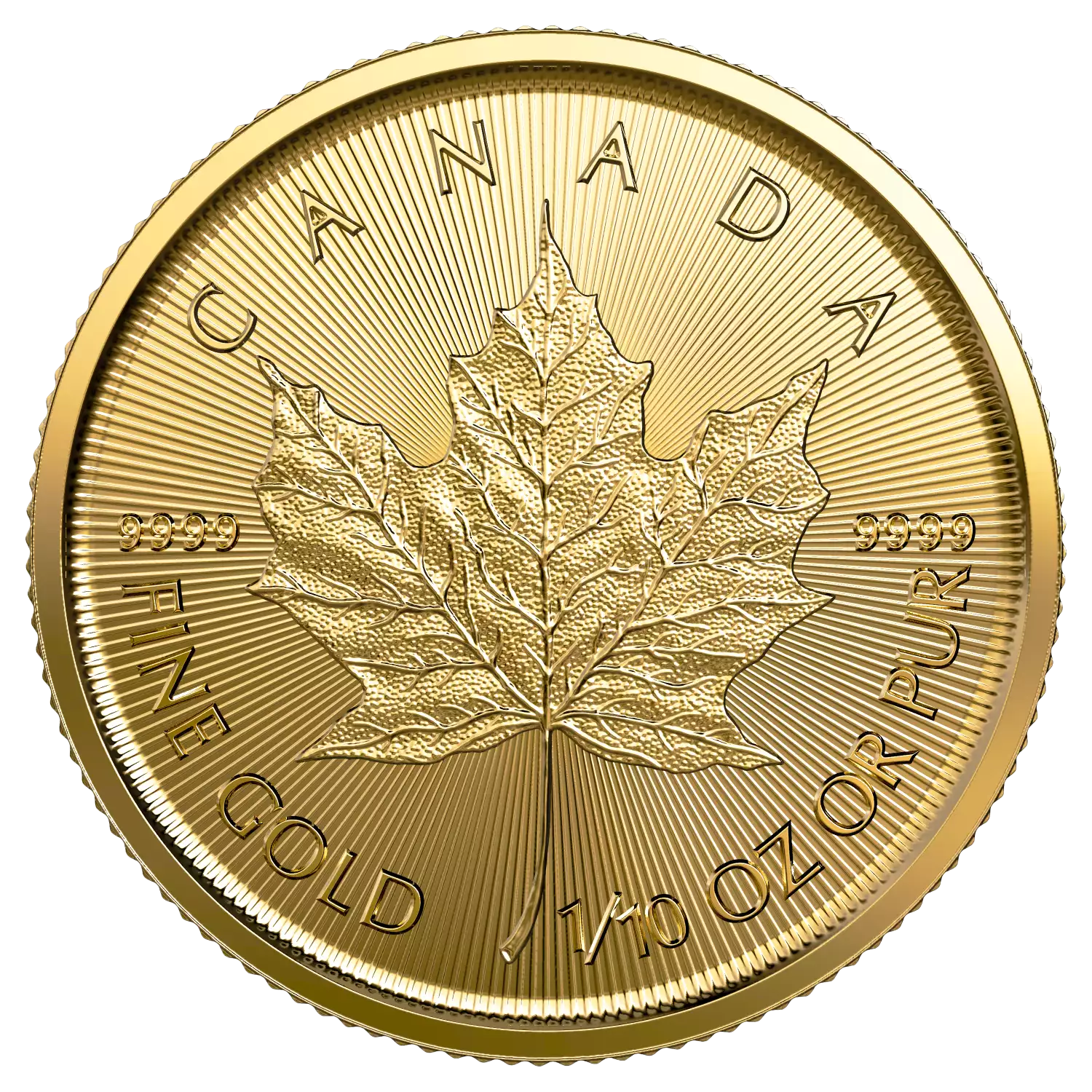 The 2023 1/10 oz Canadian Maple Leaf gold coin is the 41st release of the 1/10 oz Canadian Gold Maple Leaf coin. It contains 1/10 oz of .9999 fine Gold. The weight and purity of this coin is guaranteed by the Royal Canadian Mint. These coins are highly popular among investors and collectors.