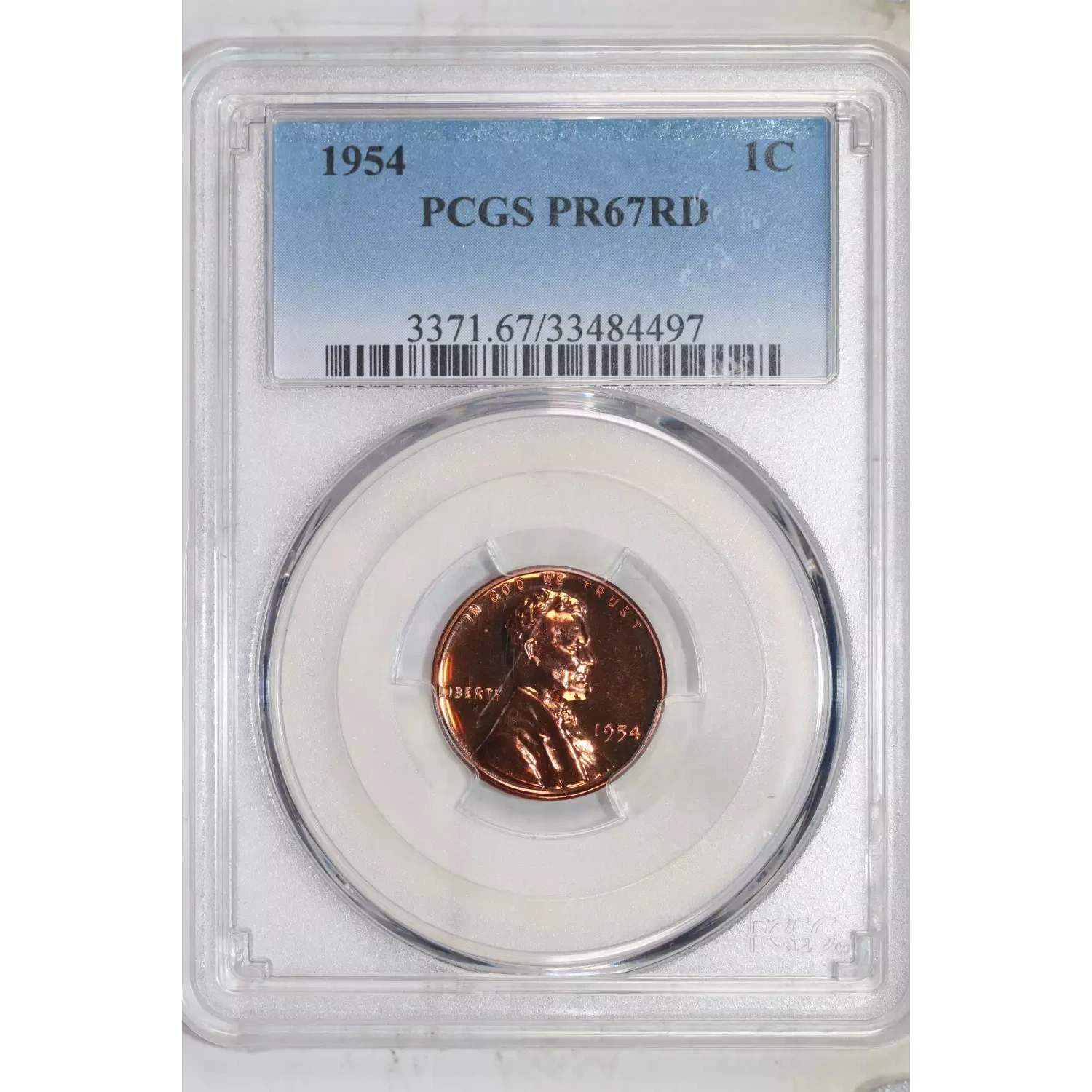 1954 PROOF LINCOLN WHEAT CENT PCGS PR67 RED