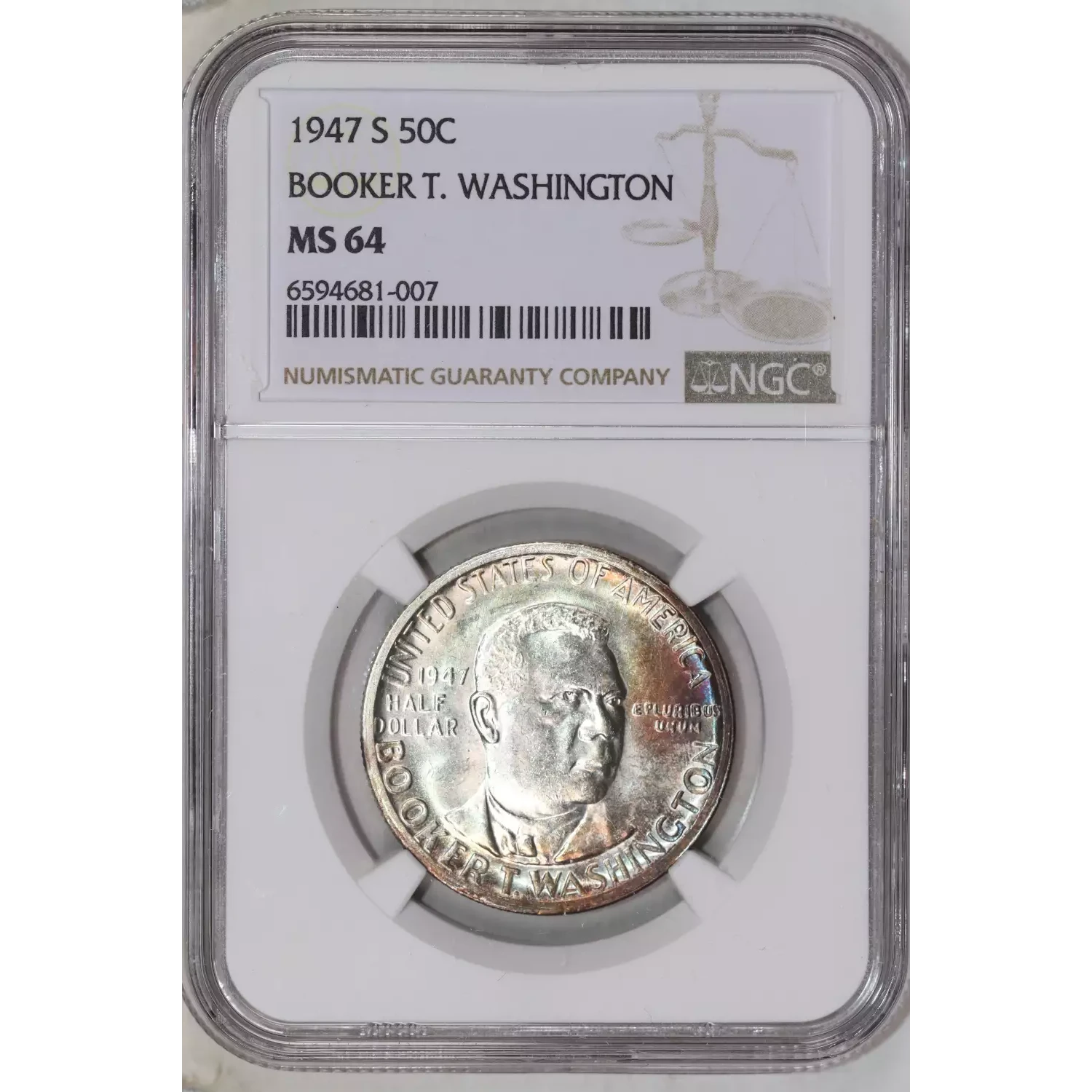 1947-S BOOKER T WASHINGTON SILVER COMMEMORATIVE HALF DOLLAR NGC MS64
