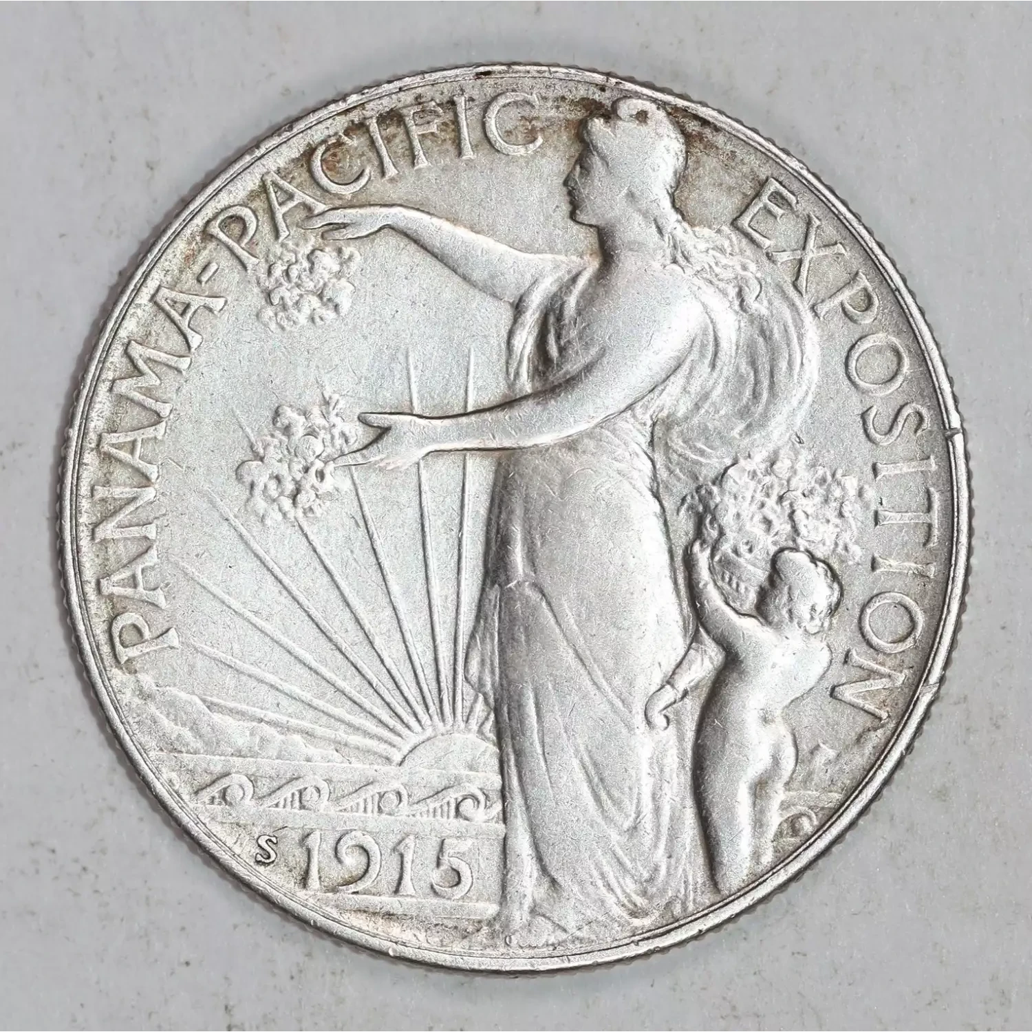 1915-S PANAMA PACIFIC SILVER COMMEMORATIVE HALF DOLLAR XF DETAILS CLEANED
