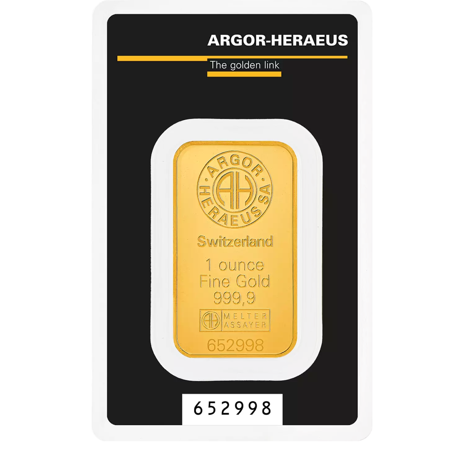 Argor-Heraeus is a well-known and respected Swiss precious metals refinery. Their 1oz gold bars are struck from 99.99% pure gold and are therefore considered to be some of the highest quality gold bars available on the market.