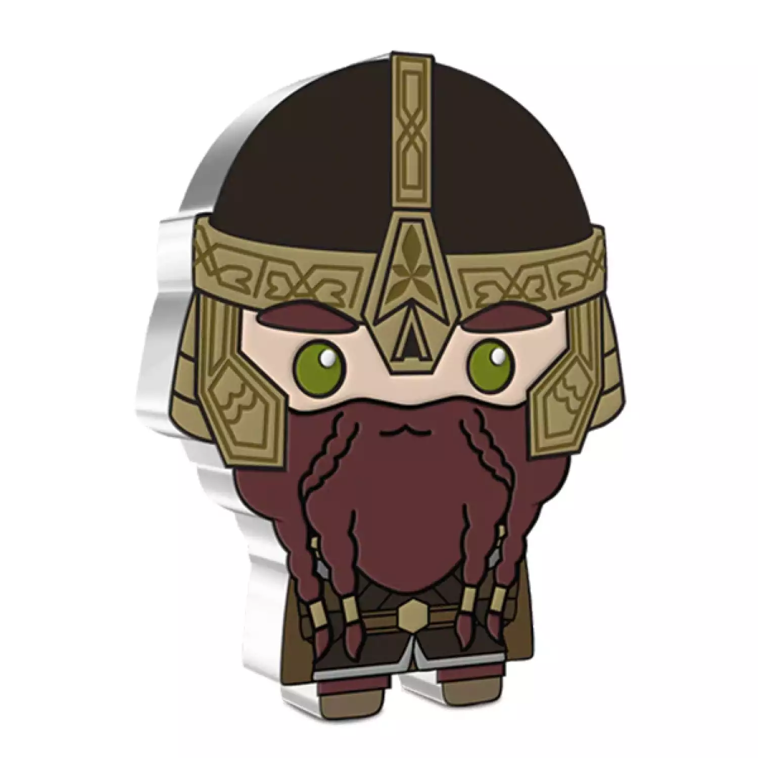Our LORD OF THE RINGS™ Chibi® Coin Series would be incomplete without this loyal member of the Fellowship of the Ring - warrior Dwarf, Gimli. His Dwarven helmet, bushy eyebrows and long auburn beard are his most significant features on this Chibi® Coin. He is dressed in his belted tunic, cape and boots. The Ian Rank Broadley effigy of Her Majesty Queen Elizabeth II is found on the obverse to confirm it as a legal tender coin. The coin is protected by a custom-made case.
