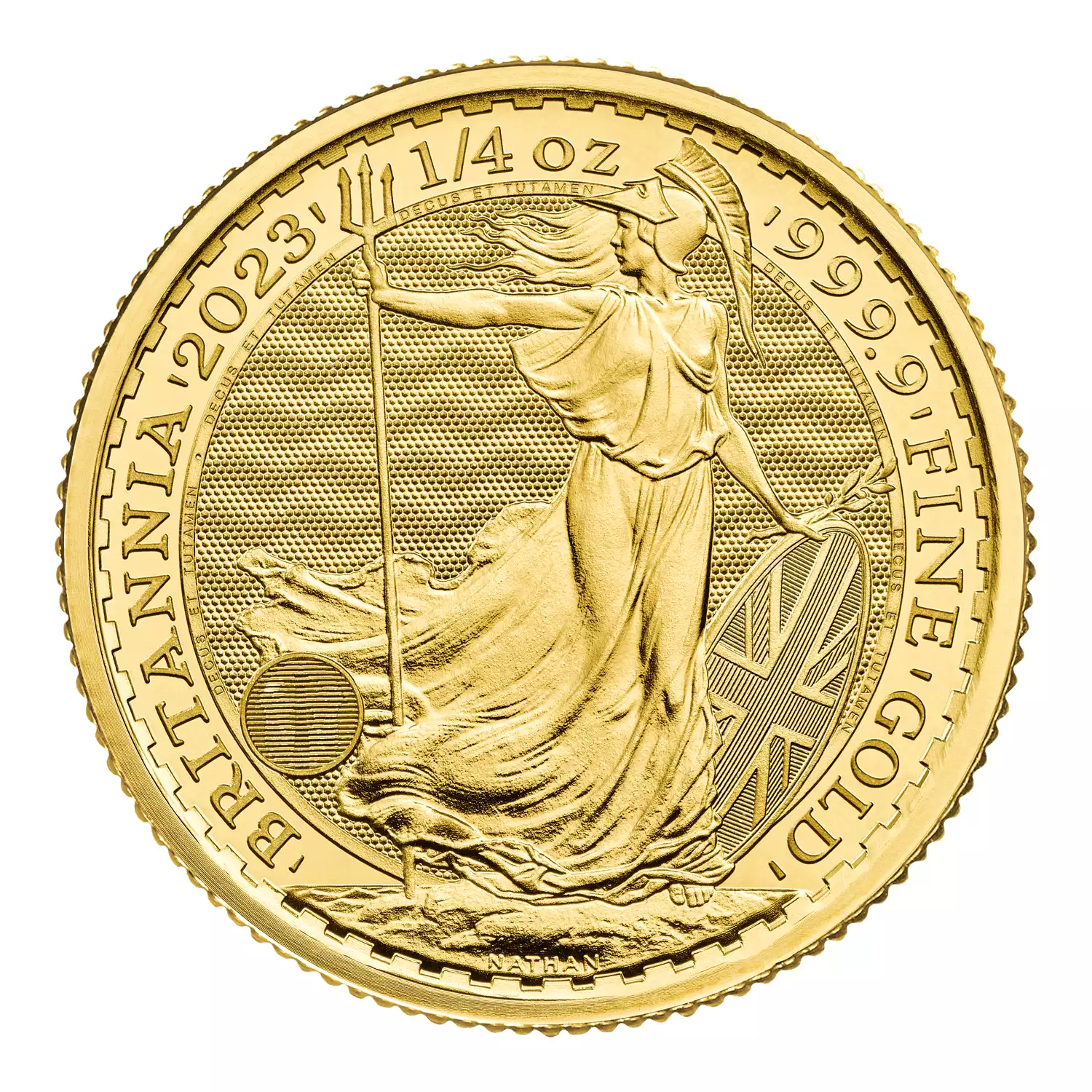 The British Gold Britannia continues to provide beauty and reliability. The 2023 1/4oz  British Gold Britannia is one of the most popular investment coins in the world. Each 2023 1/4oz British Gold Britannia contains 0.25 troy ounce of .9999 fine gold. The reverse, designed by Philip Nathan has never changed since the first Britannia bullion coin in 1987. The Britannia has been a symbol through out the history and it’s first appeareance on the Roman coins is dating back over 2000 years ago.