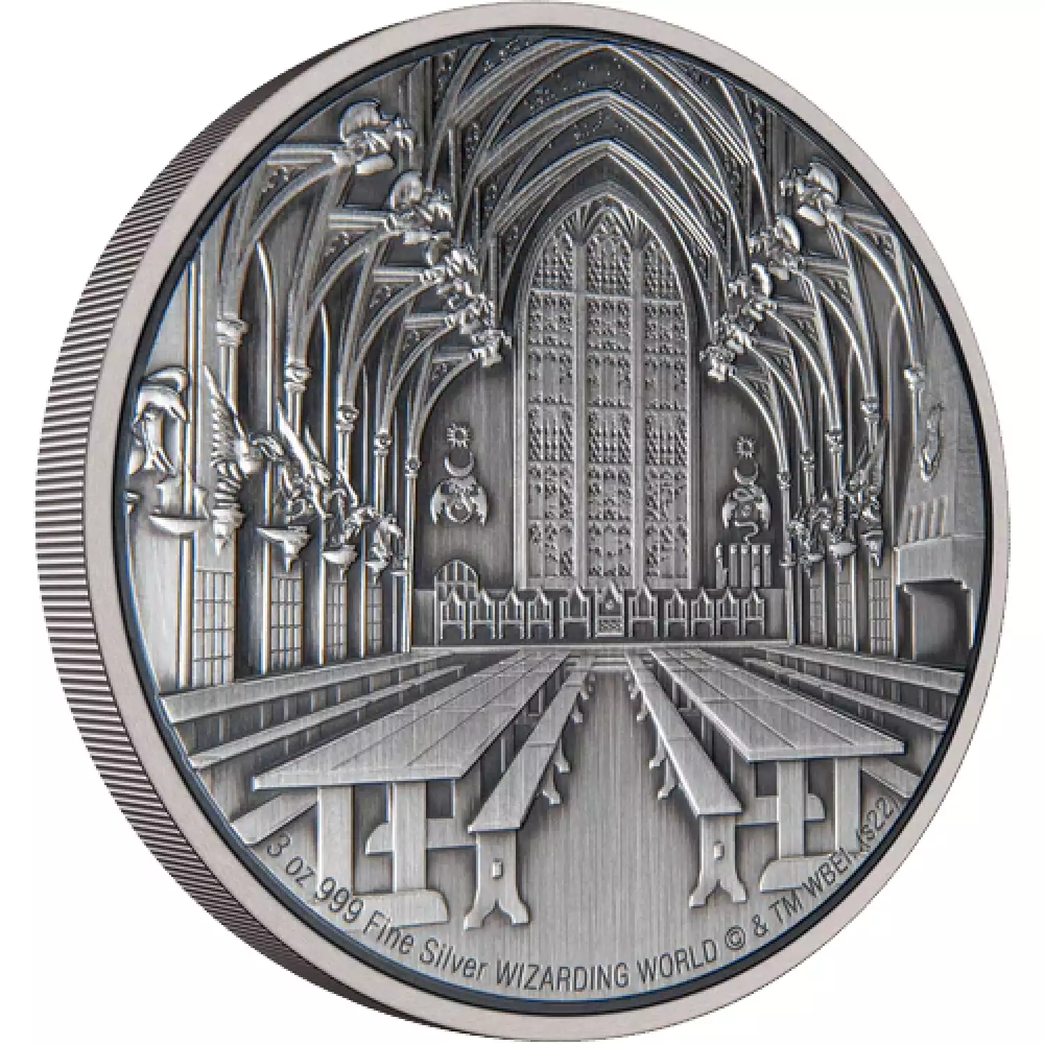 Created in partnership with Warner Bros. Consumer Products, this 3oz silver coin presents The Great Hall in the Hogwarts™ Castle from HARRY POTTER™. It is fully engraved and antiqued, with light relief added to enhance this enchanting design.