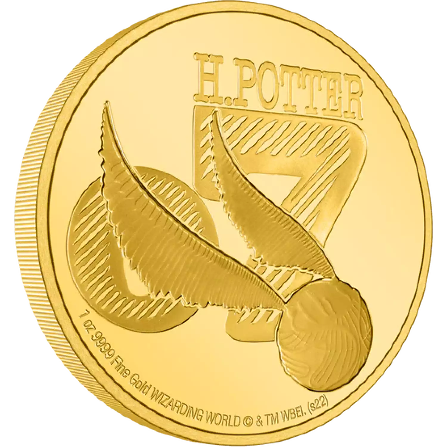 This 1oz pure gold coin celebrates the Golden Snitch™, used in the game of Quidditch™, and first seen in the HARRY POTTER™ movie Harry Potter and the Philosopher’s Stone™. Harry Potter’s name and his uniform number, 07, feature on this coin, with the Golden Snitch™ flying over the top. These engraved and frosted elements contrast beautifully against the mirror finish background. The effigy of Her Majesty Queen Elizabeth II can be seen on the opposite side, confirming the coin as legal tender.