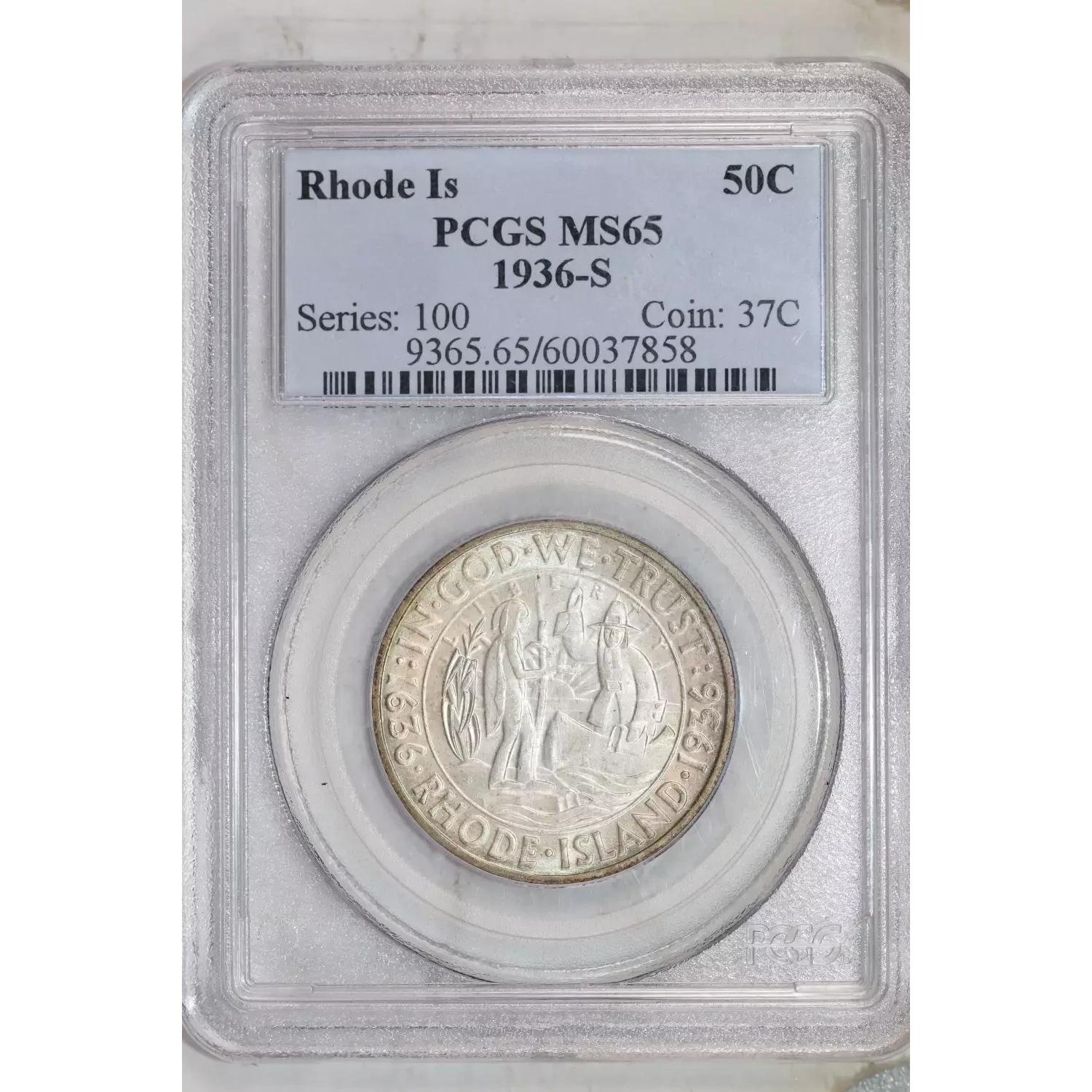 1936-S RHODE ISLAND SILVER COMMEMORATIVE HALF DOLLAR PCGS MS65 PQ ORIGINAL!