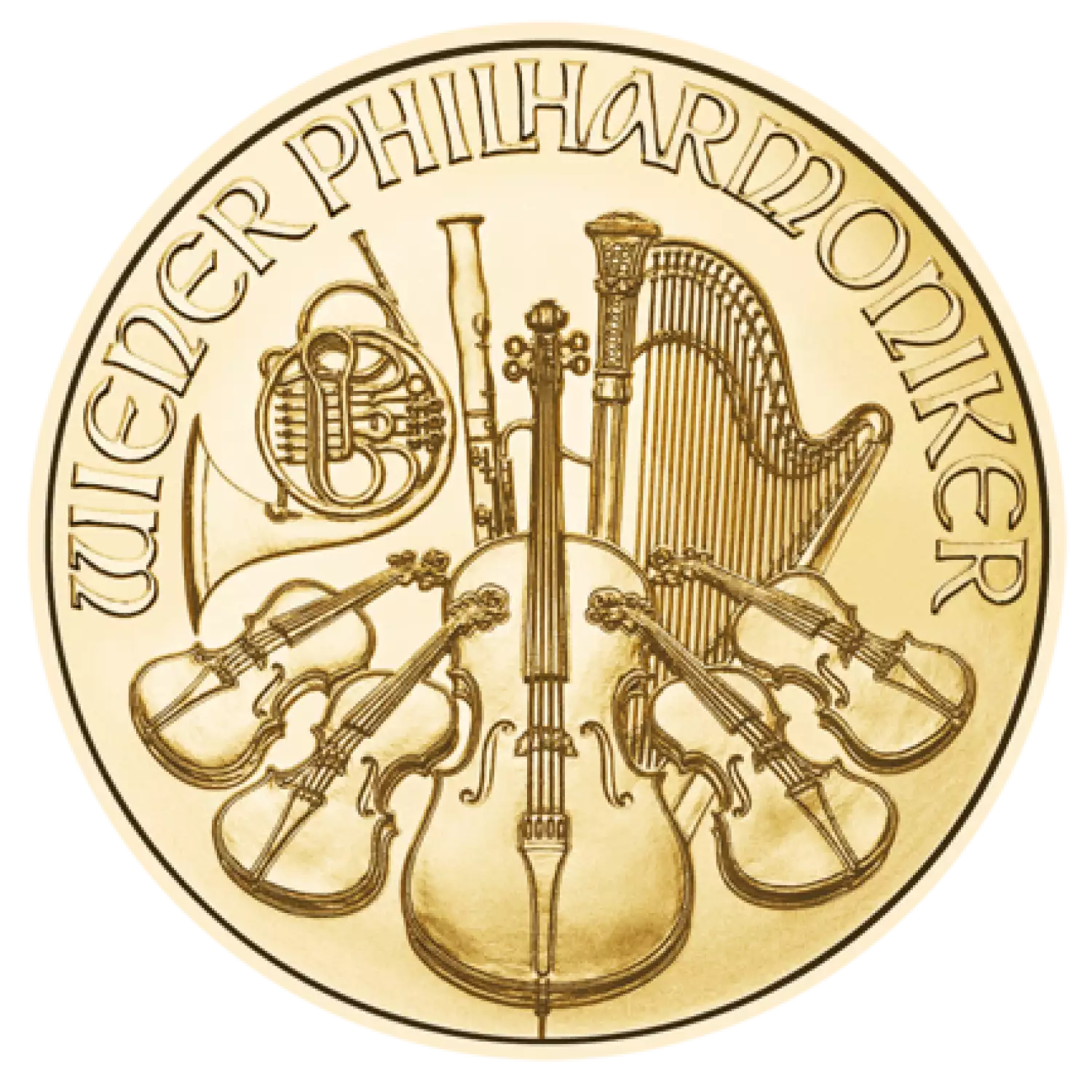 The 2023 1/25 oz Austrian Gold Philharmonic is a classically styled .9999 fine gold coin, backed by Austria. This series of gold coin is highly popular among investors and collectors. The 1/25 oz Austrian Gold Philharmonic coin contain 0.04 oz of gold. The Reverse of the 2023 1/25 oz Austrian Philharmonic gold coin features an array of instruments, including the cello, violin, harp, Vienna horn and bassoon.