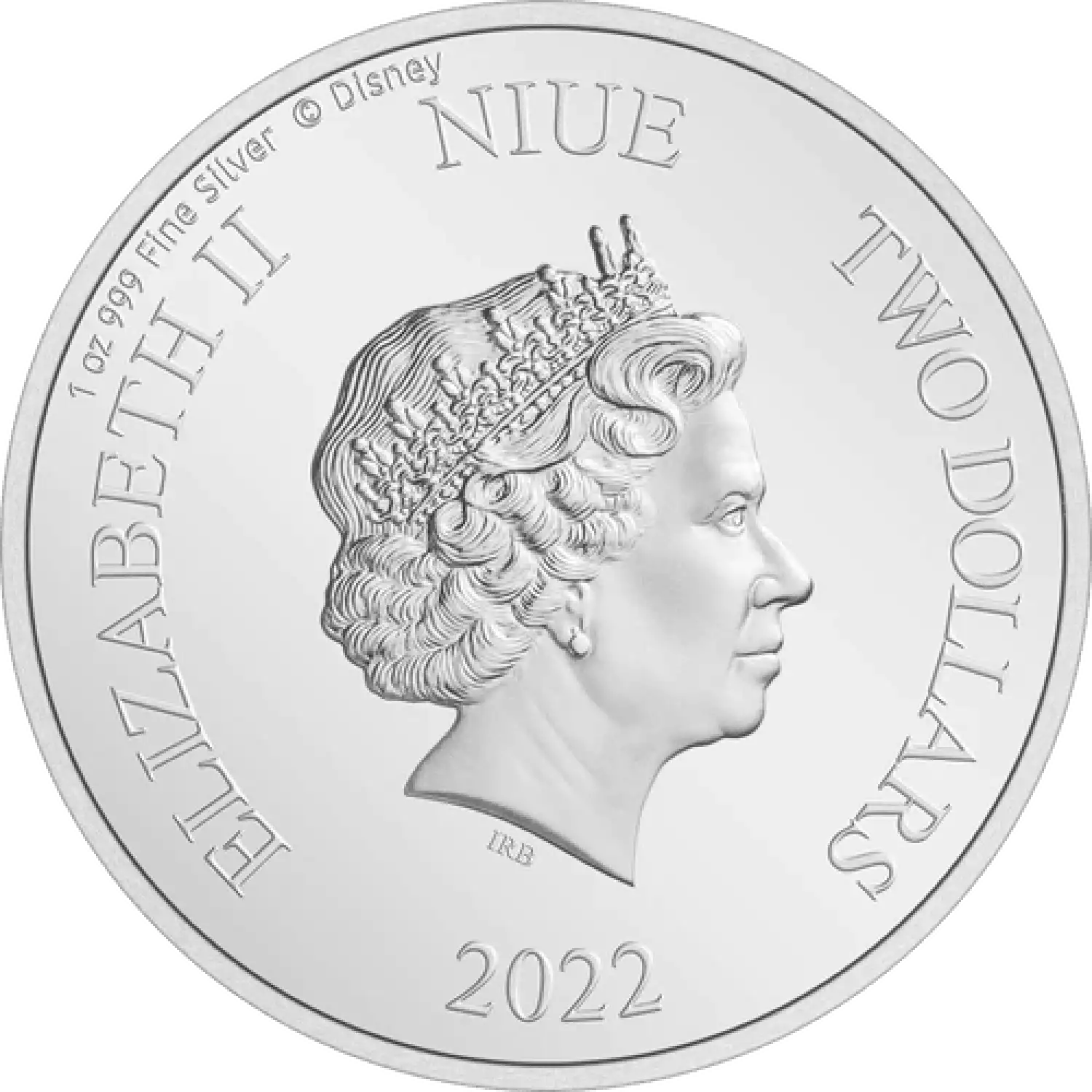 This coin features the endearing final moment in Disney 101 Dalmatians where Roger and Anita are singing together, surrounded by their 101 dogs. Made of 1oz pure silver, the image is mostly in colour but for contrast, the wall has been engraved and frosted.