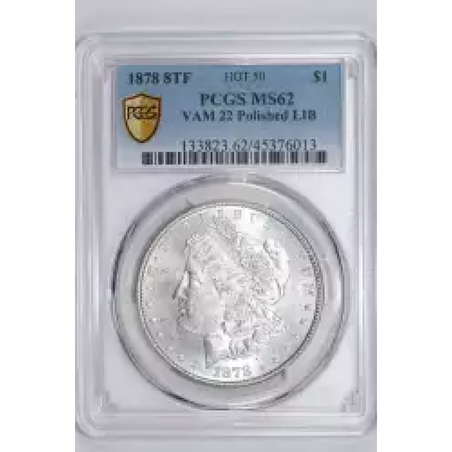 1878 8TF VAM-22 "POLISHED LIB" HOT 50 MORGAN DOLLAR PCGS MS62
