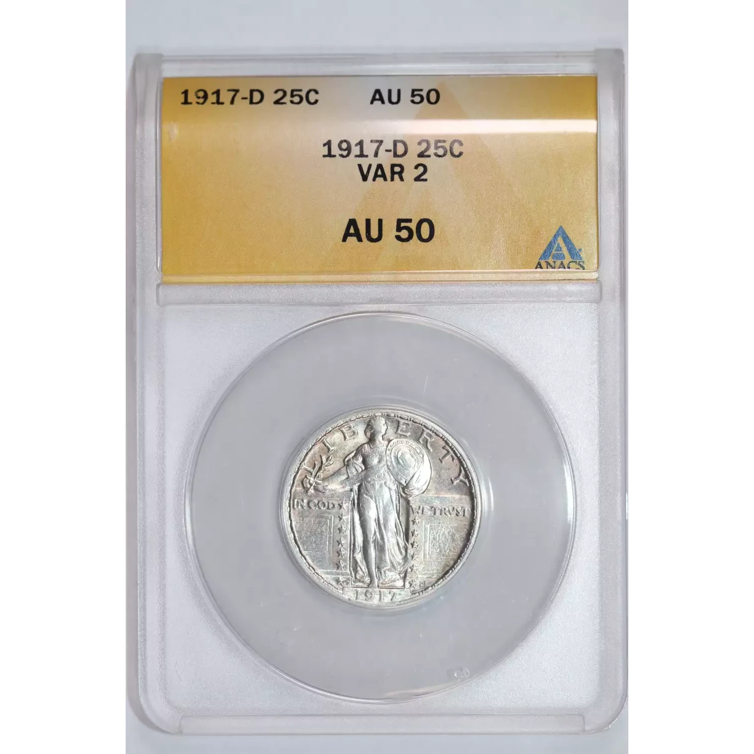 1917-D TYPE 2 STANDING LIBERTY QUARTER ANACS AU50