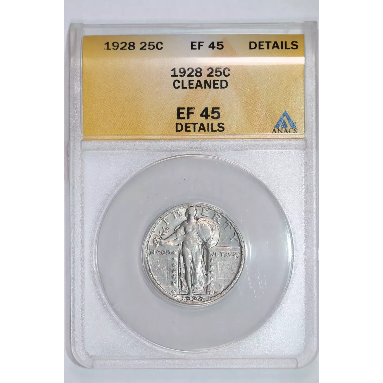 1928 STANDING LIBERTY QUARTER ANACS XF45 DETAILS