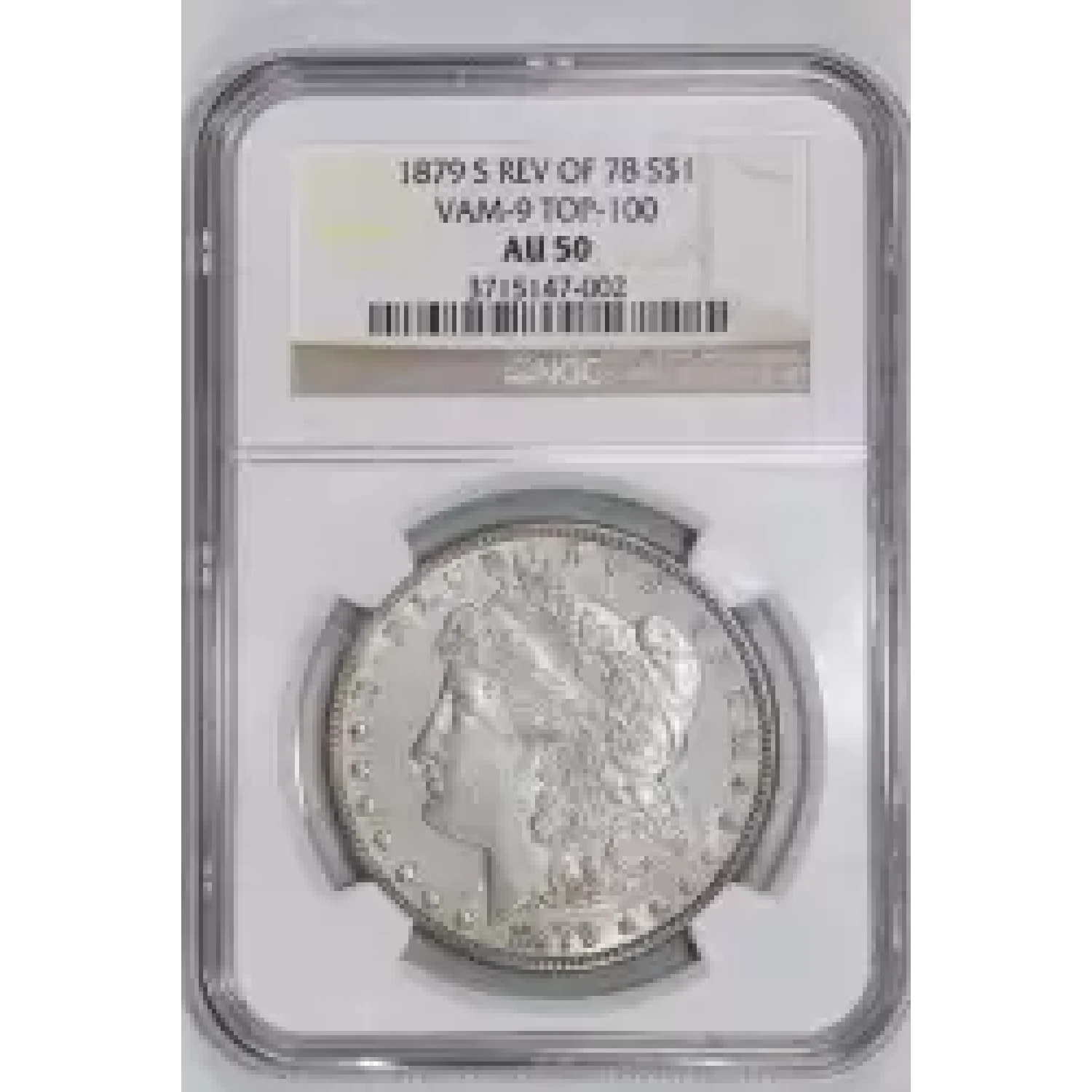 1879-S Morgan Silver Dollar NGC AU-50 S VAM-9 TOP-100