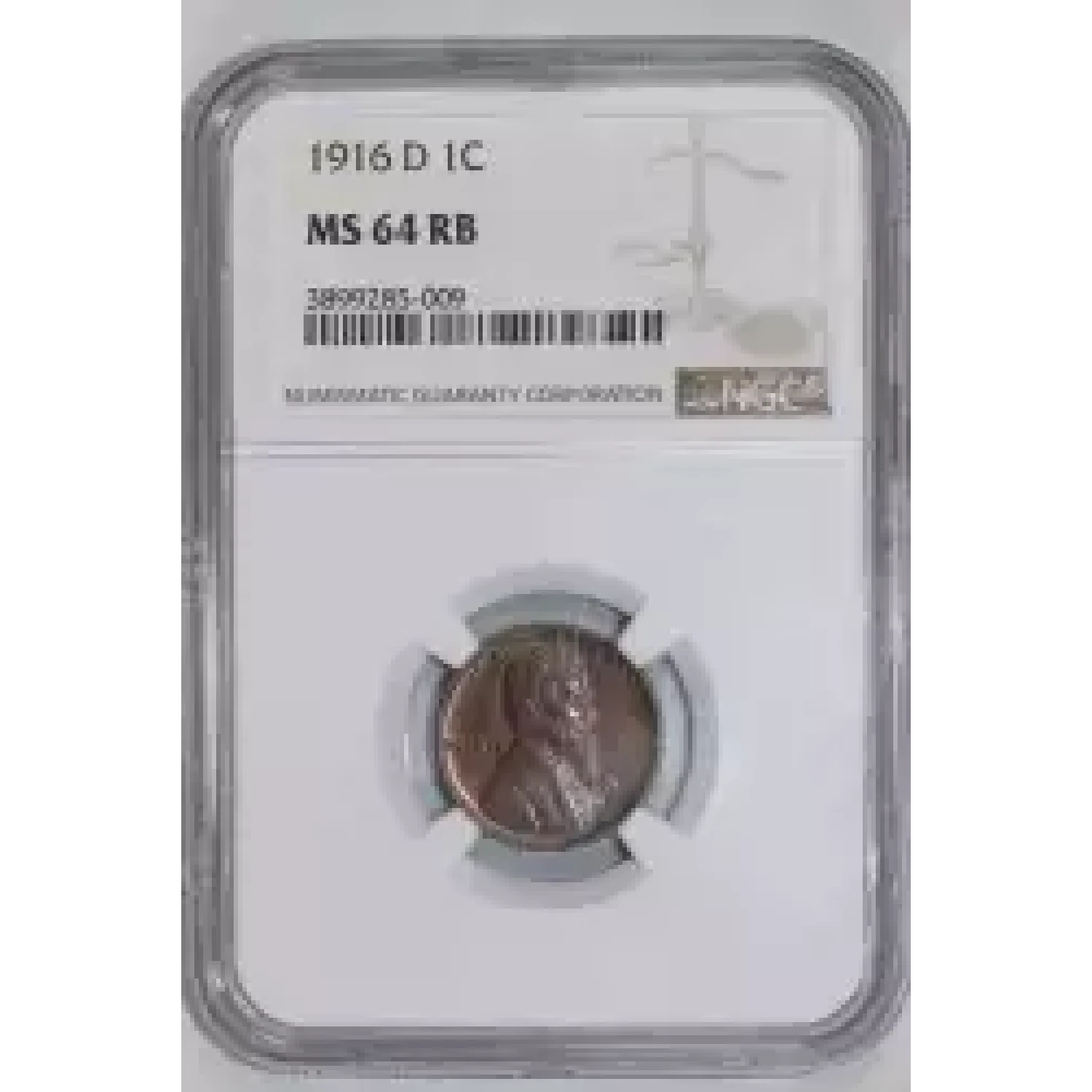 1916-D LINCOLN WHEAT CENT NGC MS64 RB