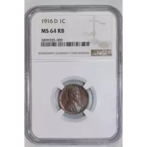 1916-D Small Cents Lincoln, Wheat Ears Reverse NGC MS-64 RB