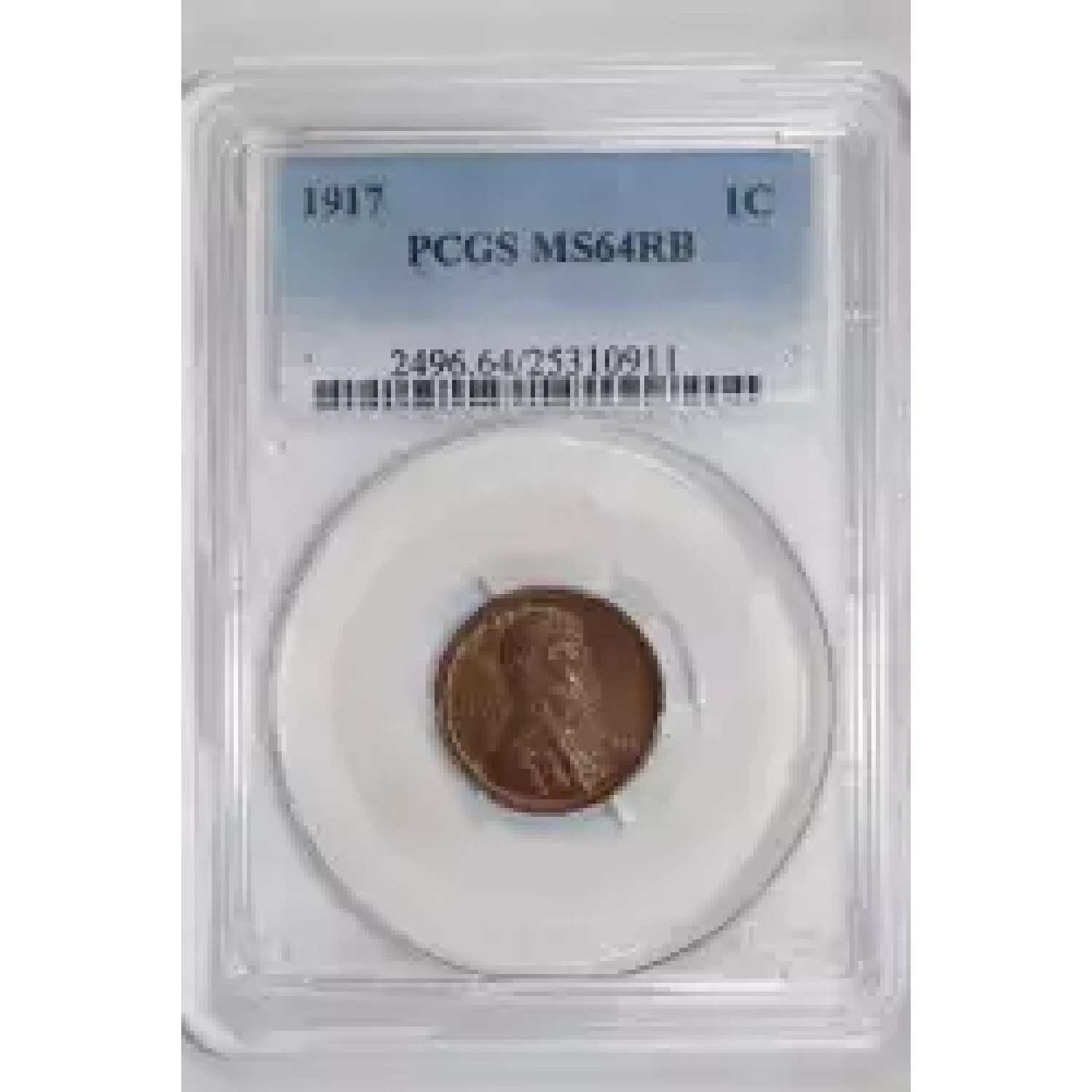 1917 Small Cents Lincoln, Wheat Ears Reverse PCGS MS-64 RB