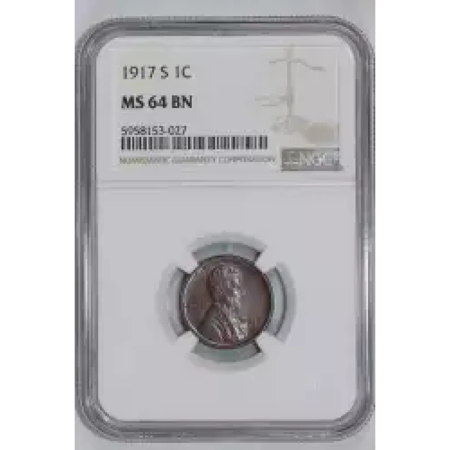 1917-S LINCOLN WHEAT CENT NGC MS64 BN - GORGEOUS COLOR!