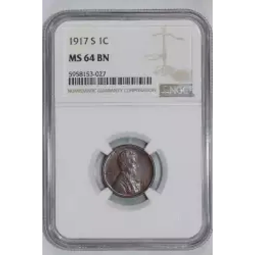 1917-S Small Cents Lincoln, Wheat Ears Reverse NGC MS-64 BN