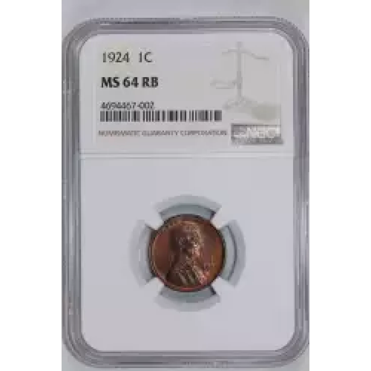 1924 LINCOLN WHEAT CENT NGC MS64 RB