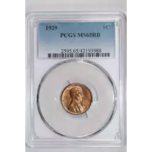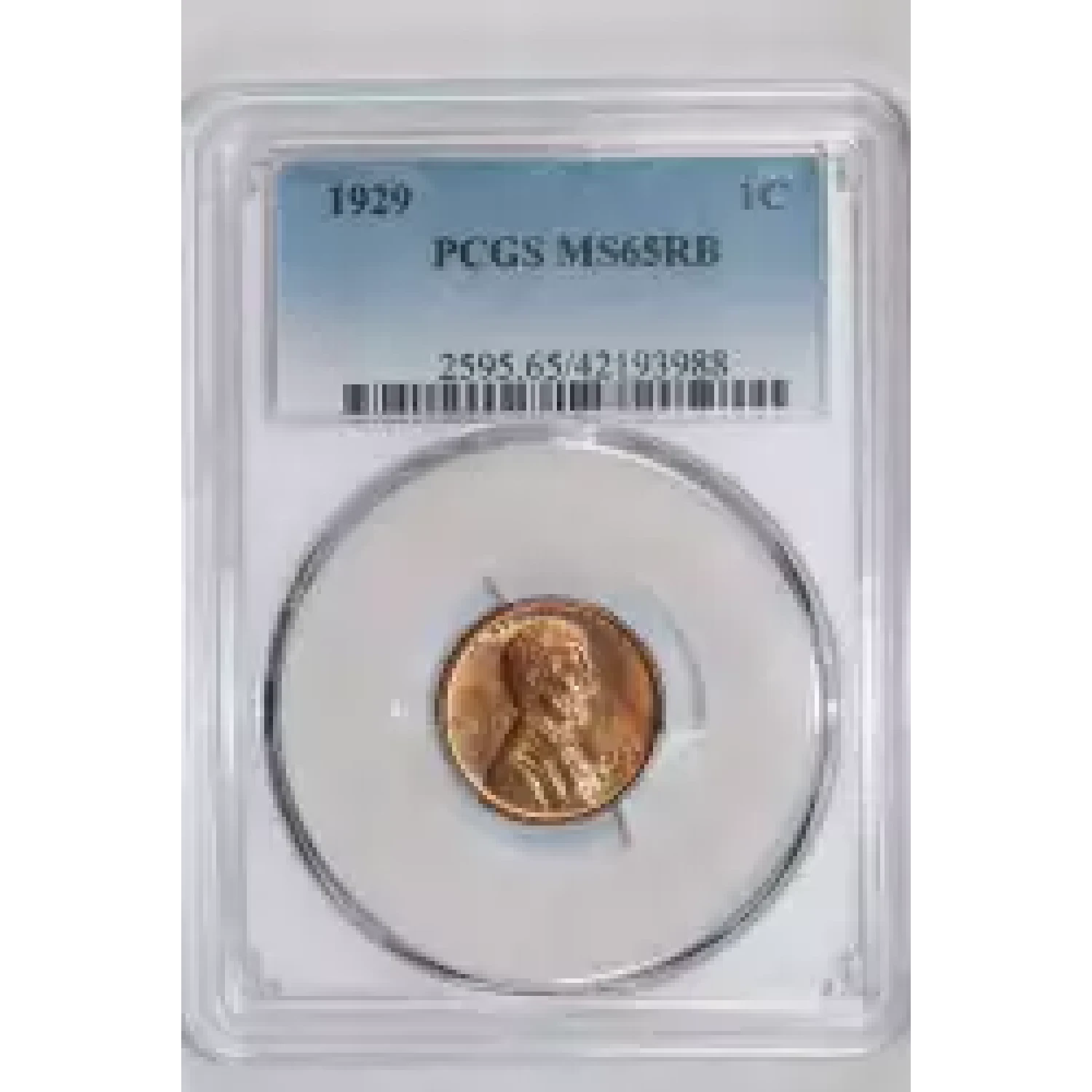 1929 LINCOLN WHEAT CENT PCGS MS65 RB