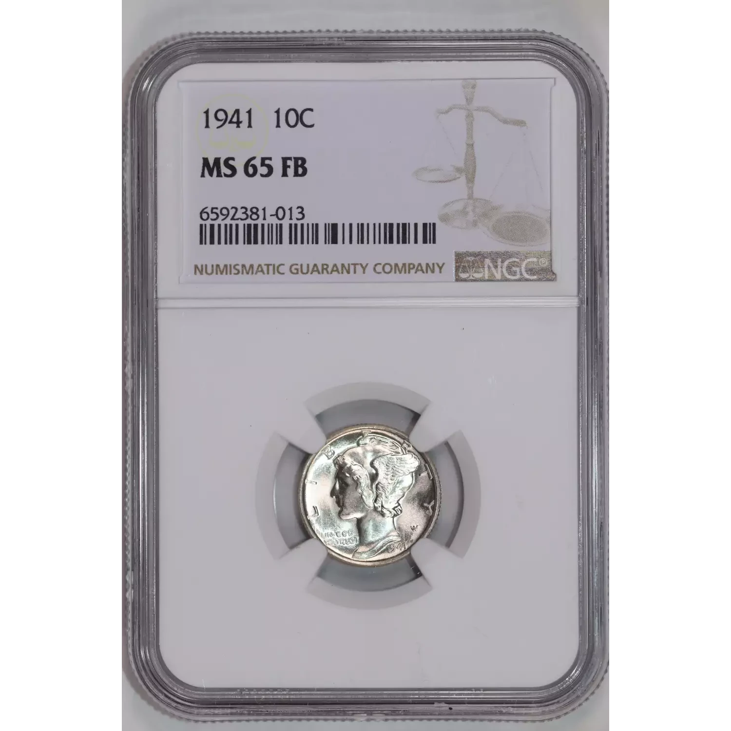 1941 Dimes Winged Liberty Head or Mercury NGC MS-65 FB