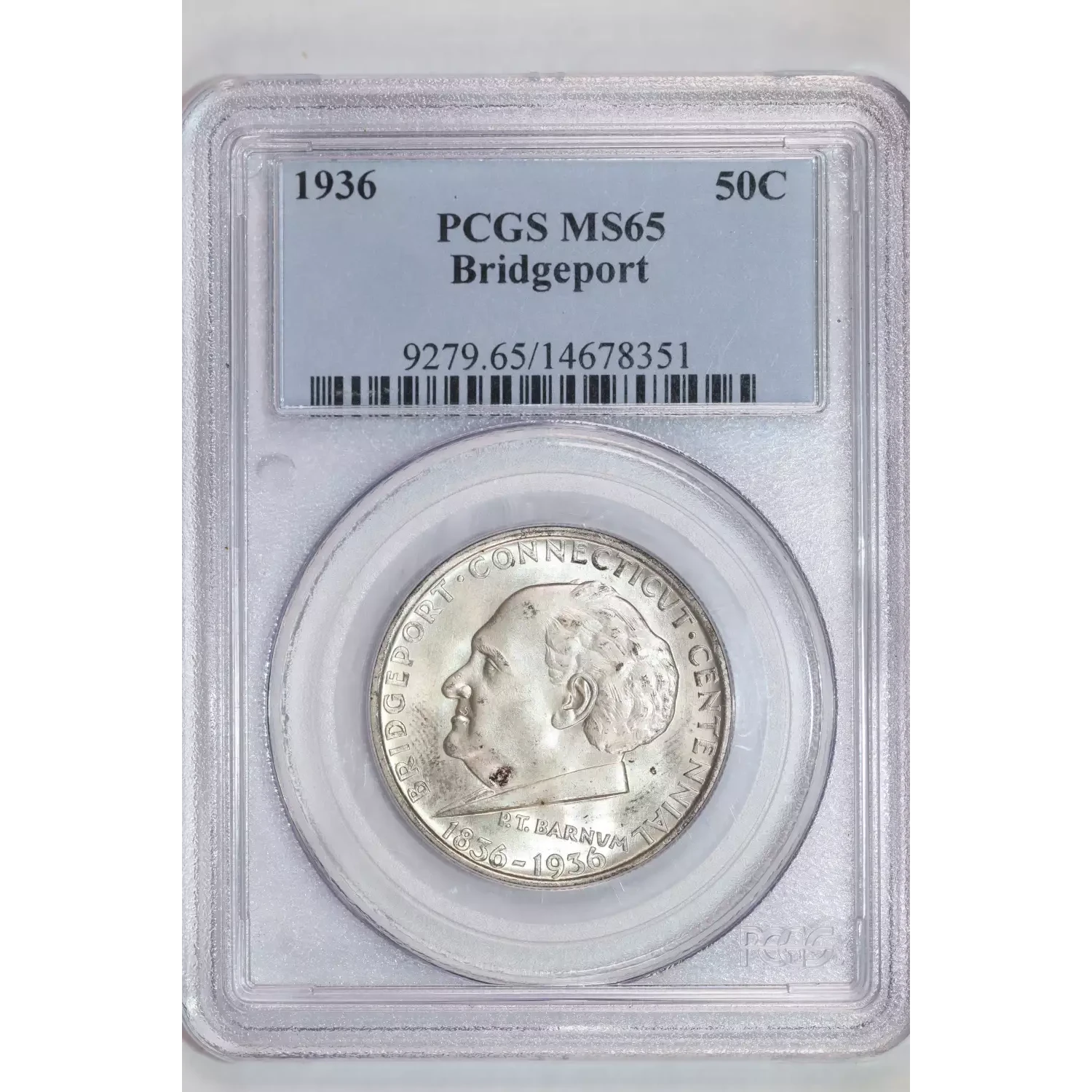 1936 BRIDGEPORT SILVER COMMEMORATIVE HALF DOLLAR PCGS MS65