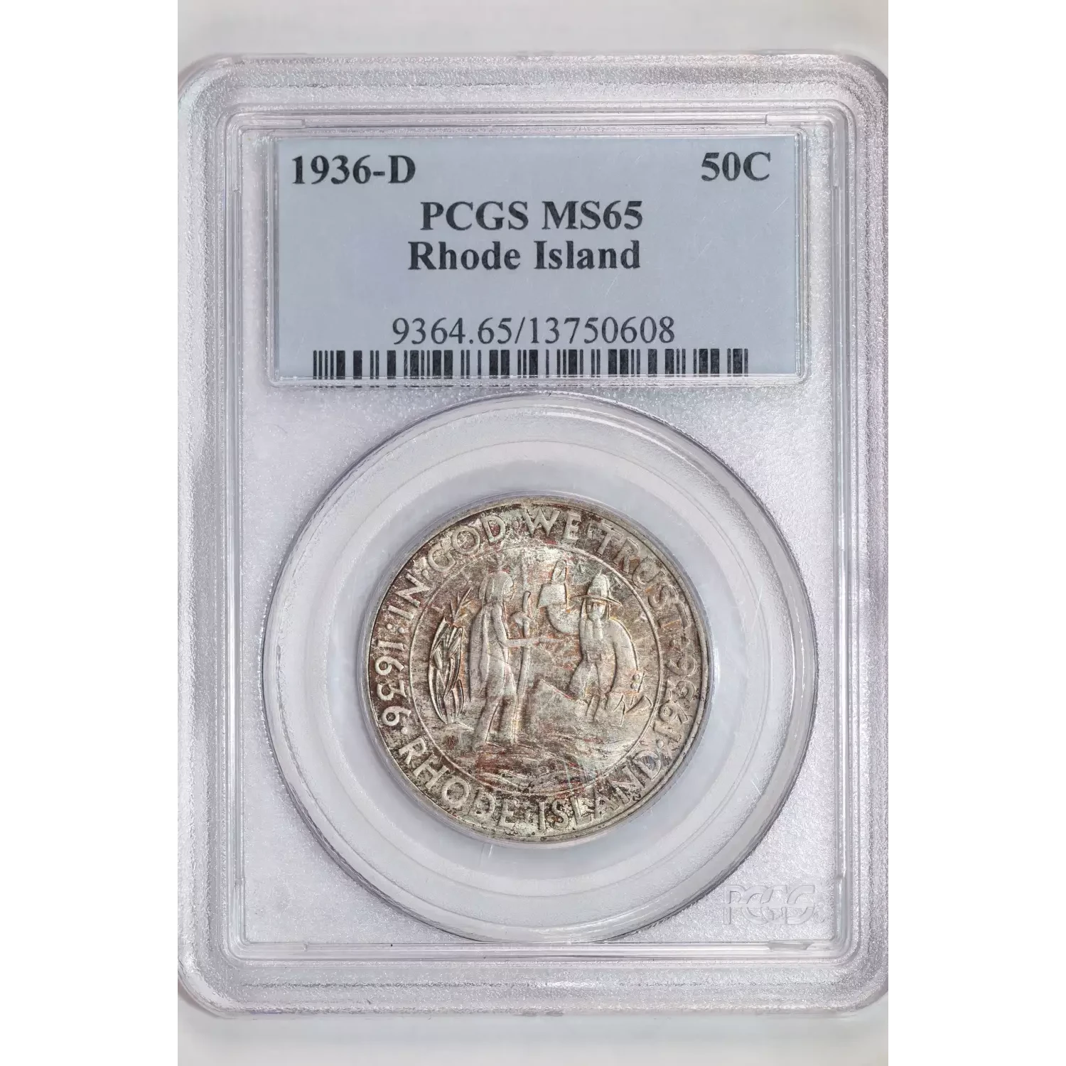 1936-D RHODE ISLAND SILVER COMMEMORATIVE HALF DOLLAR PCGS MS65