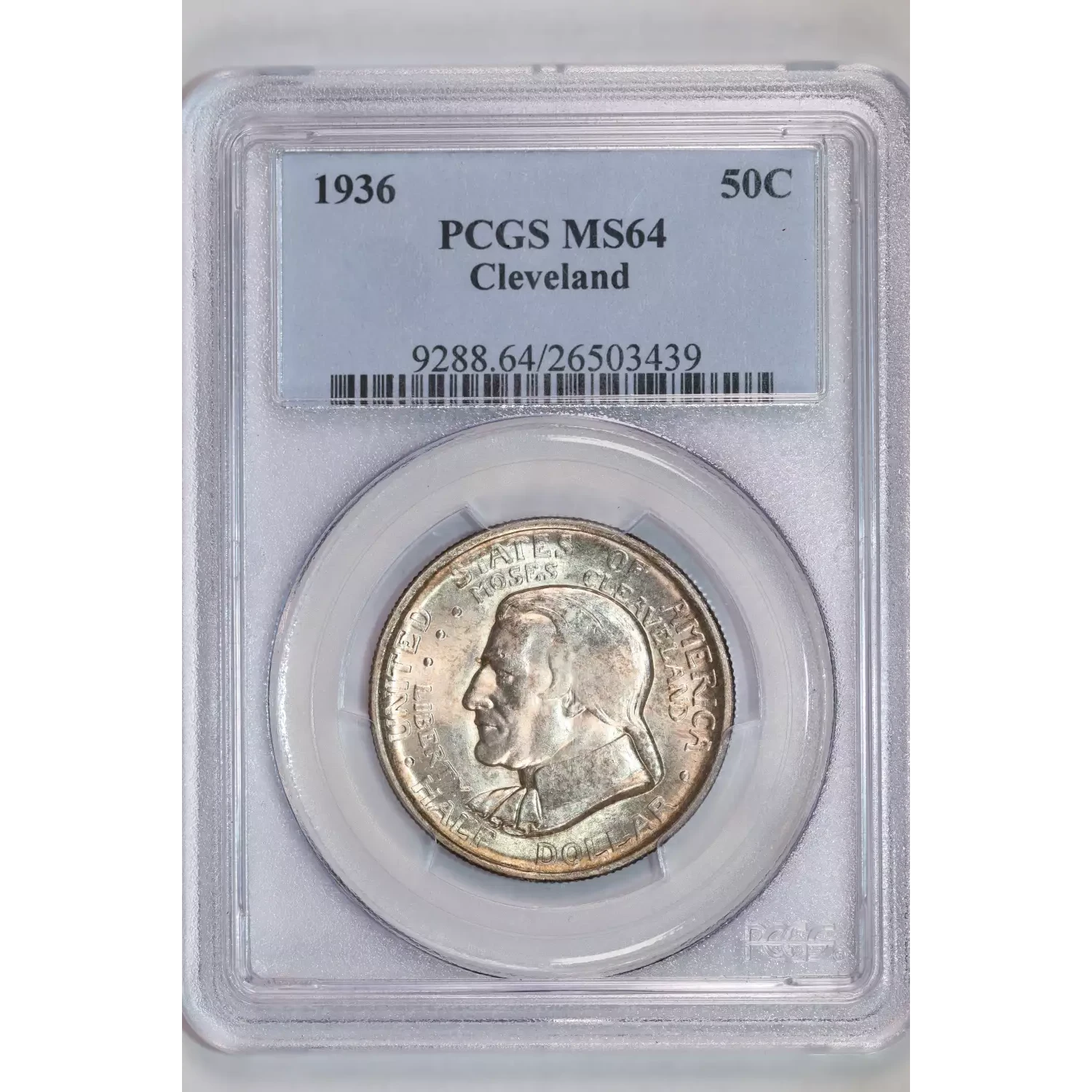 1936 CLEVELAND SILVER COMMEMORATIVE HALF DOLLAR PCGS MS64