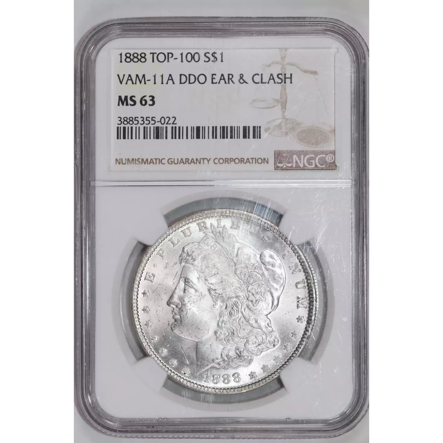 1888 VAM-11A "DDO EAR & CLASH" TOP 100 MORGAN DOLLAR NGC MS63