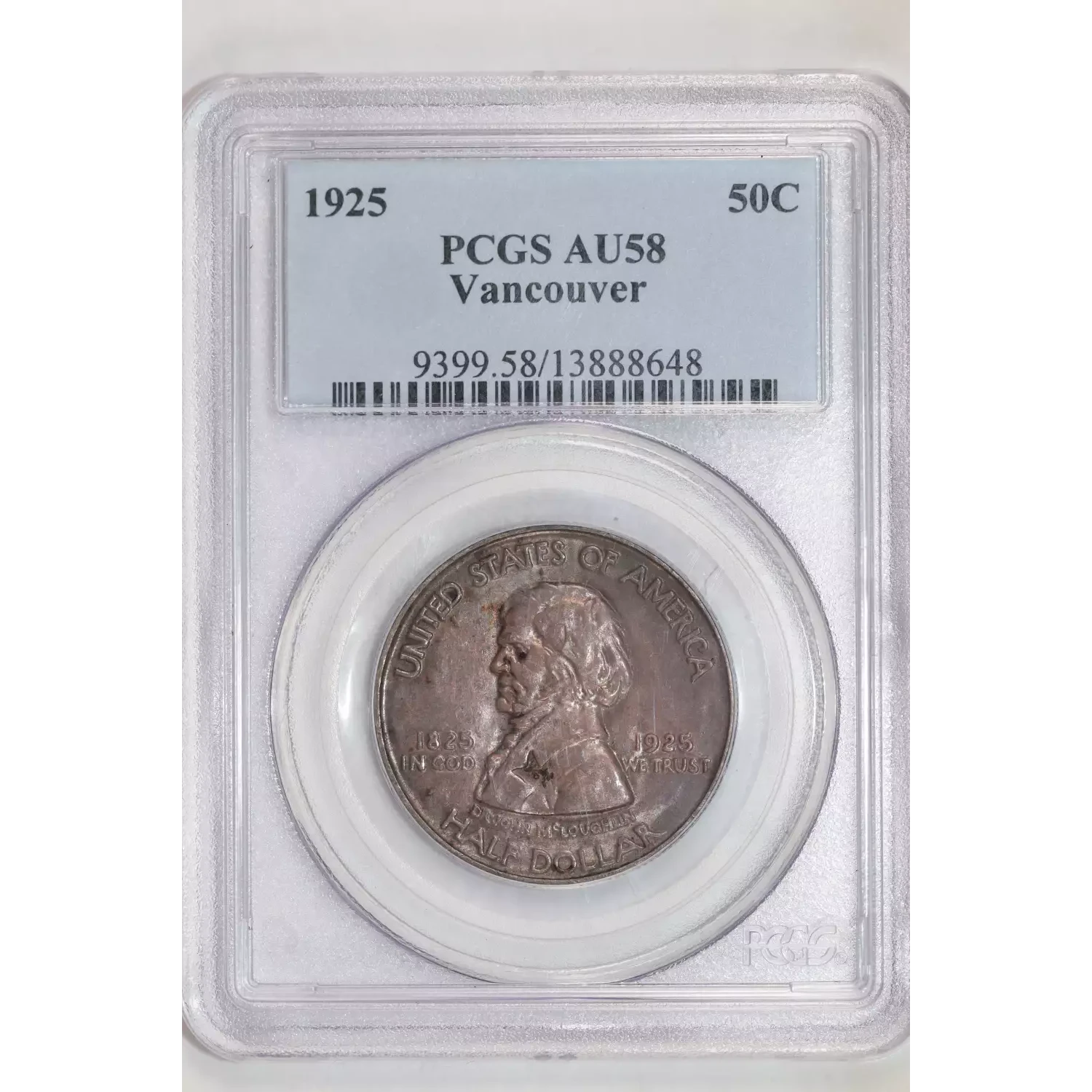 1925 VANCOUVER SILVER COMMEMORATIVE HALF DOLLAR PCGS AU58
