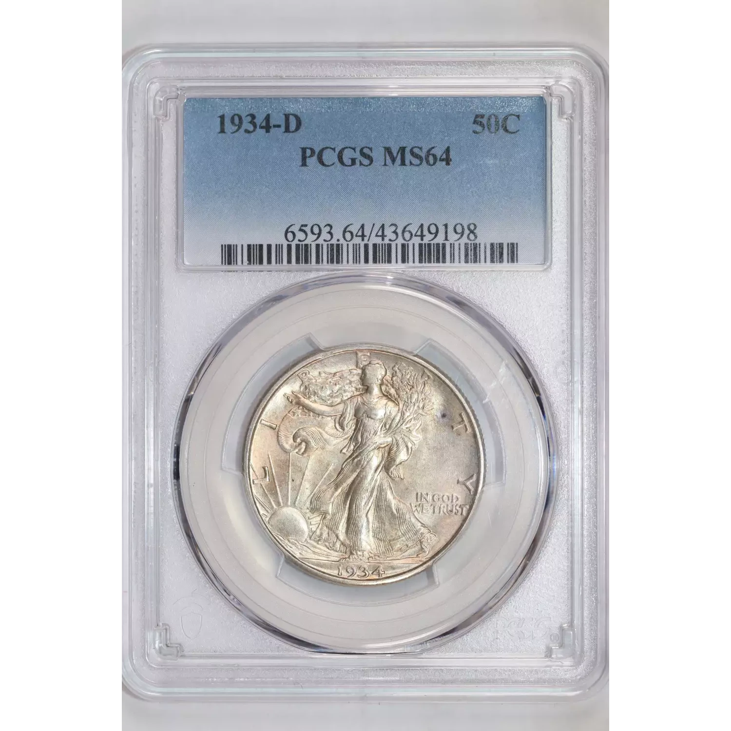 1934-D WALKING LIBERTY HALF DOLLAR PCGS MS64