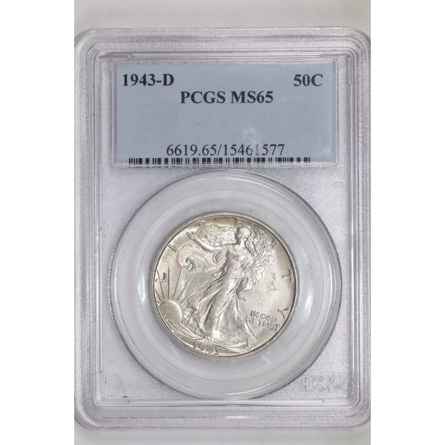 1943-D WALKING LIBERTY HALF DOLLAR PCGS MS65