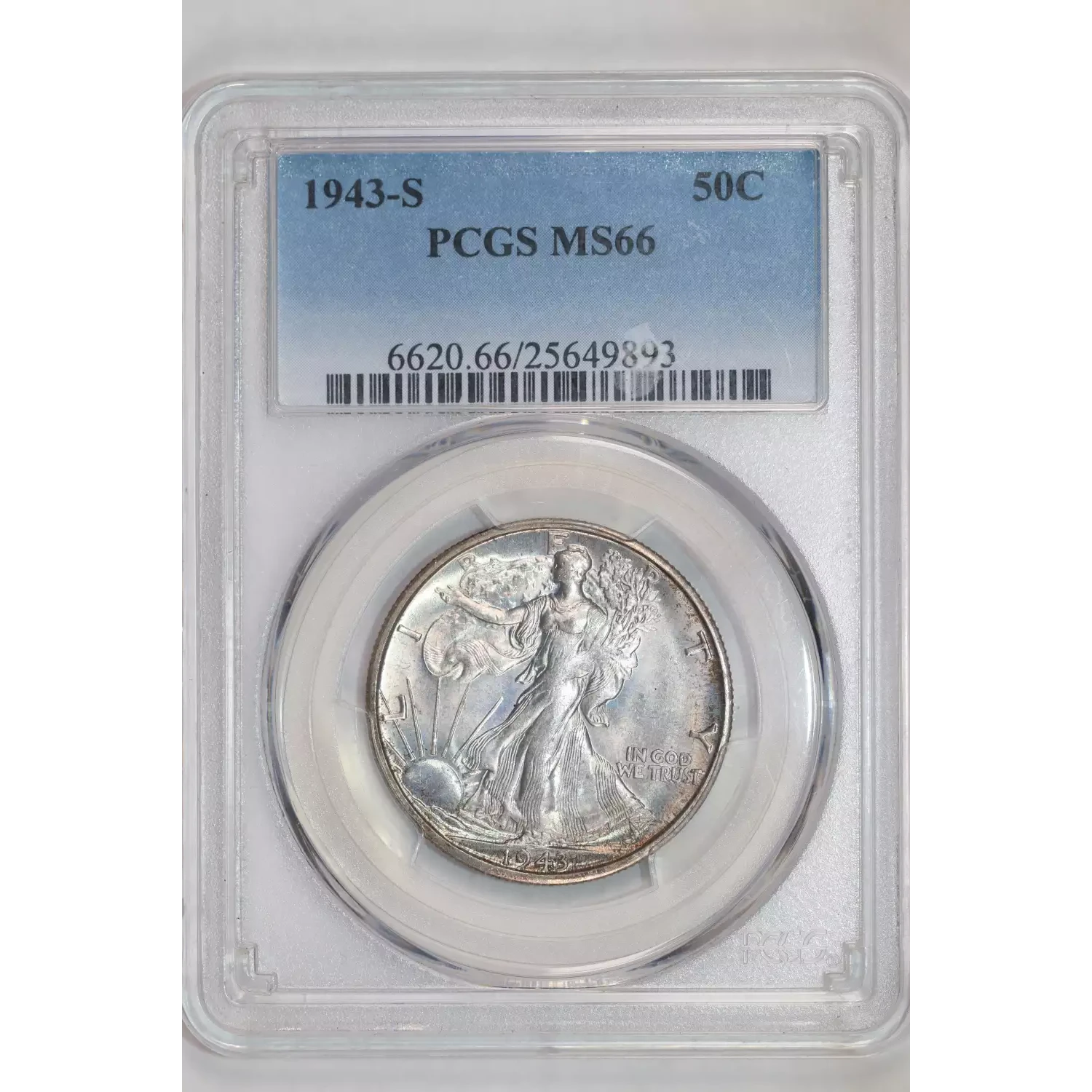 1943-S WALKING LIBERTY HALF DOLLAR PCGS MS66