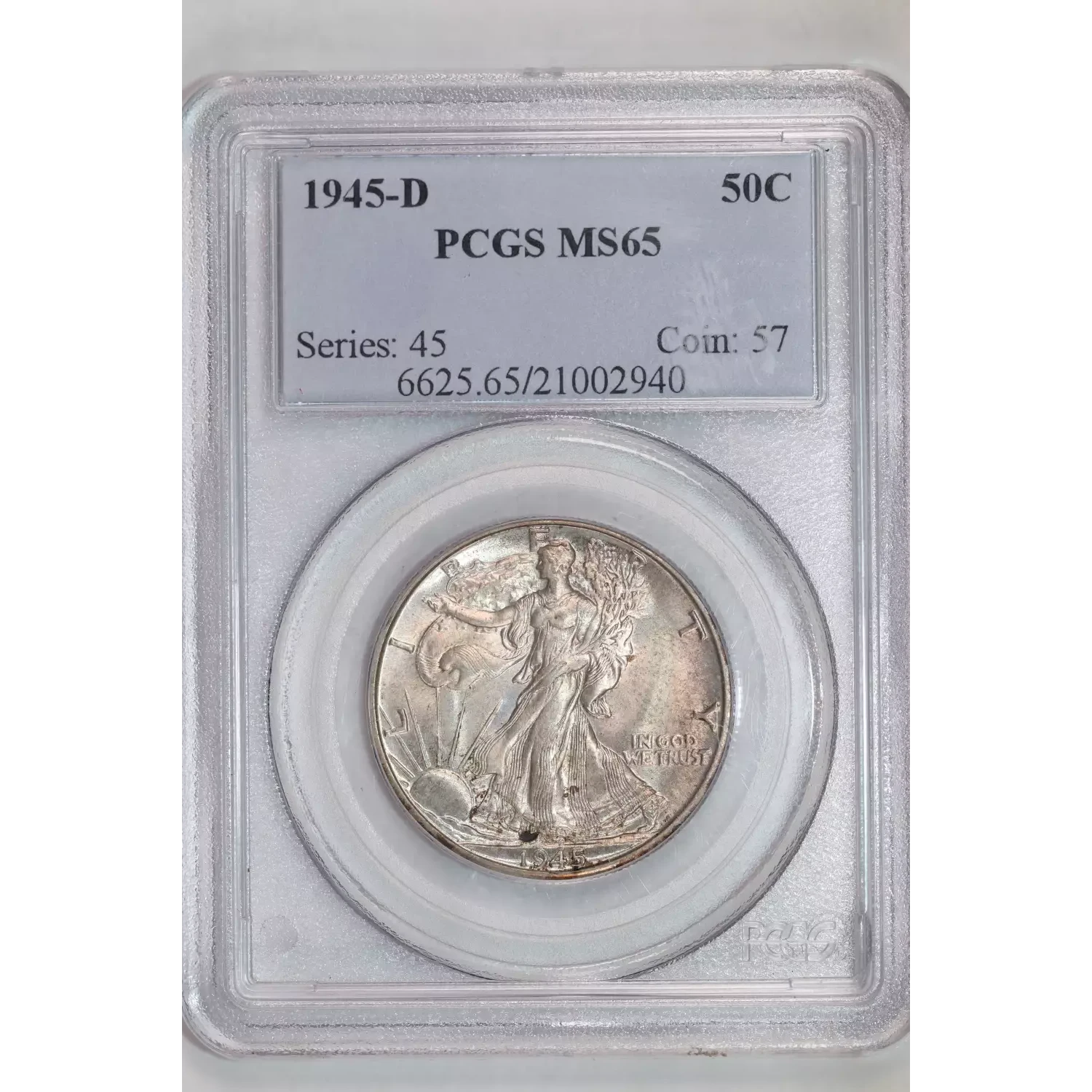 1945-D WALKING LIBERTY HALF DOLLAR PCGS MS65