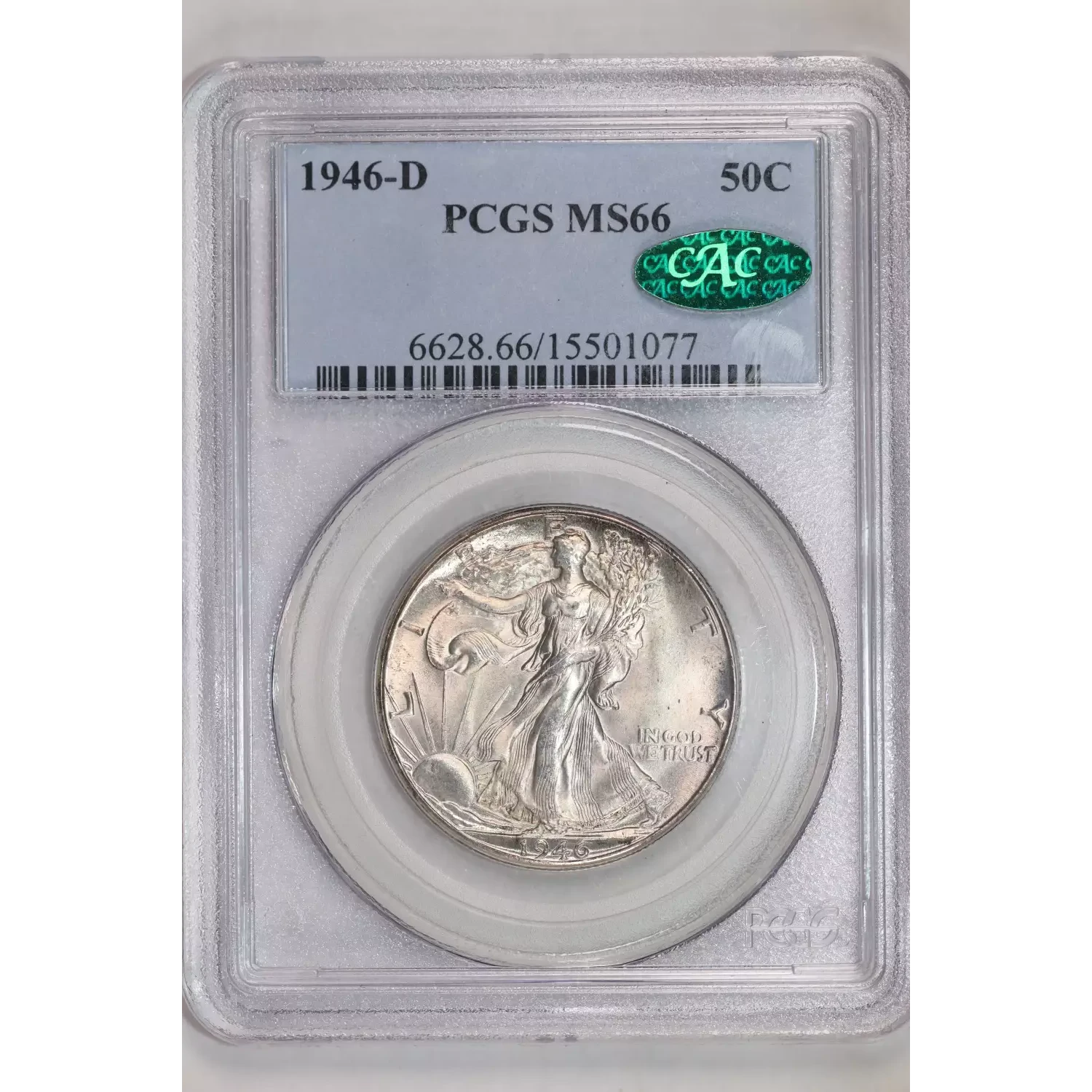1946-D WALKING LIBERTY HALF DOLLAR PCGS MS66 CAC - VERY PQ!